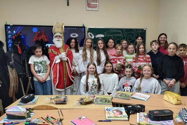Kulminacyjnym momentem dnia było spotkanie z Mikołajem. Uczniowie otrzymali upominki oraz mieli okazję wykonać pamiątkowe zdjęcia na specjalnie przygotowanych ściankach zimowo-świątecznych.