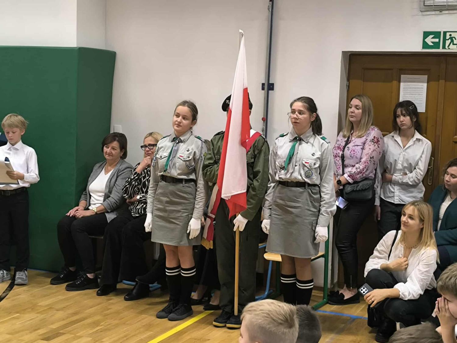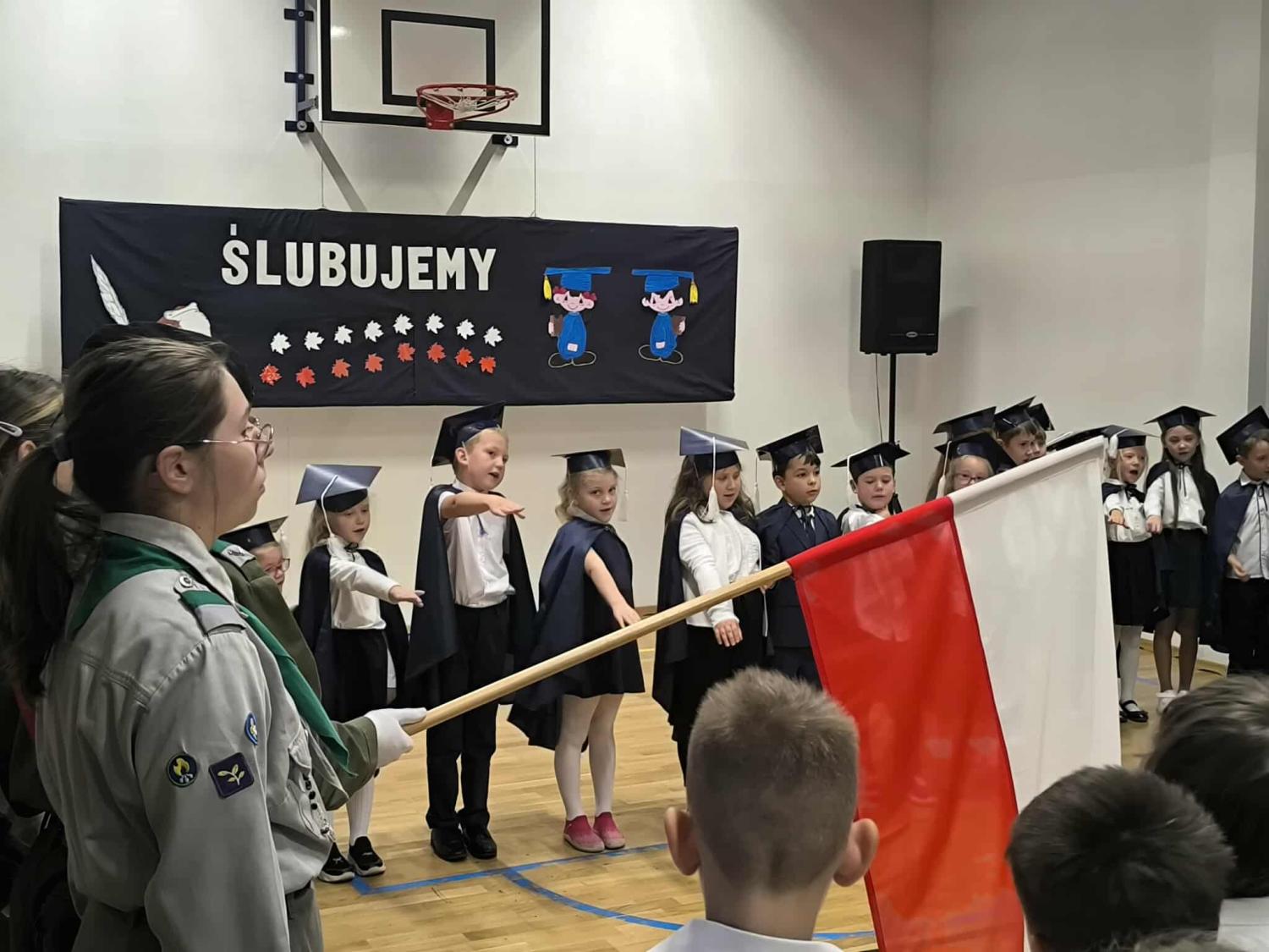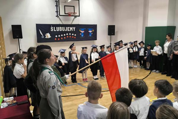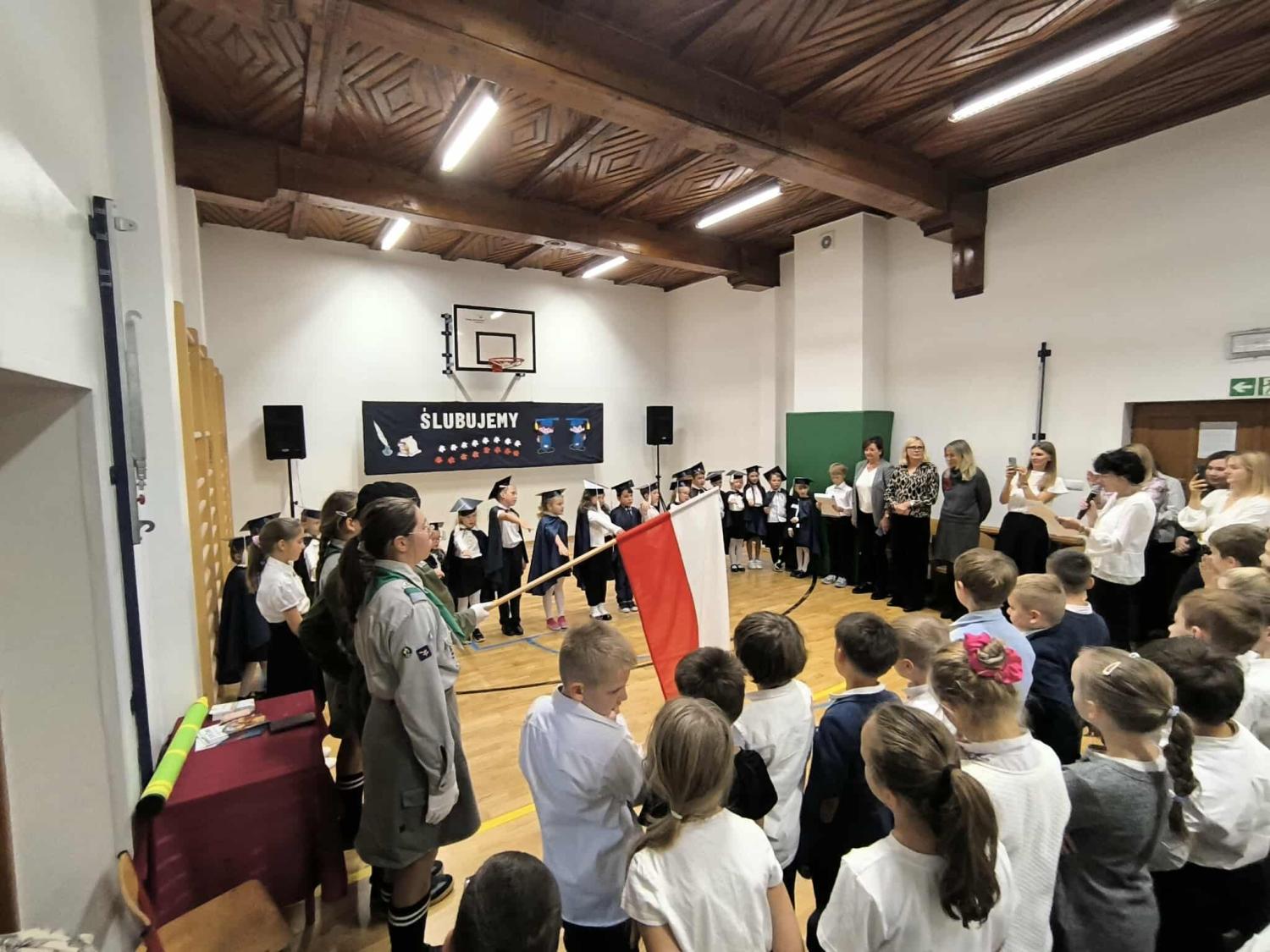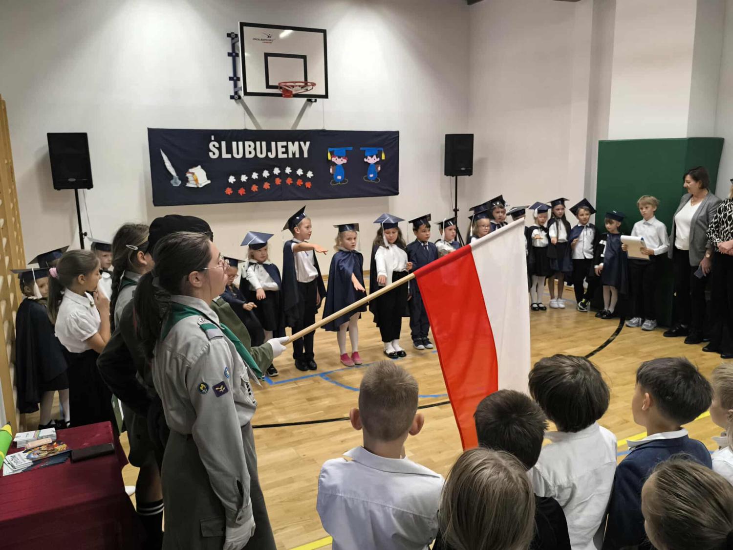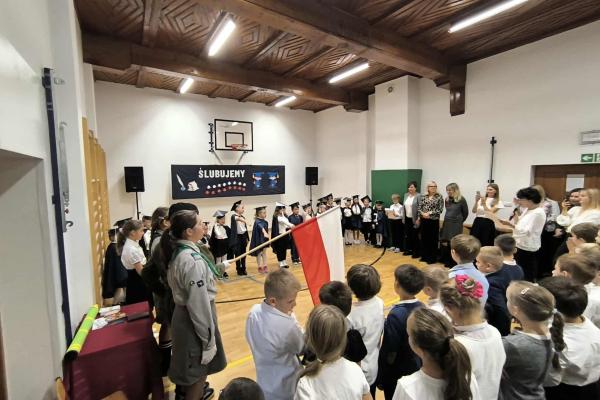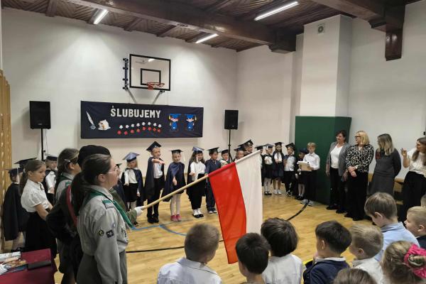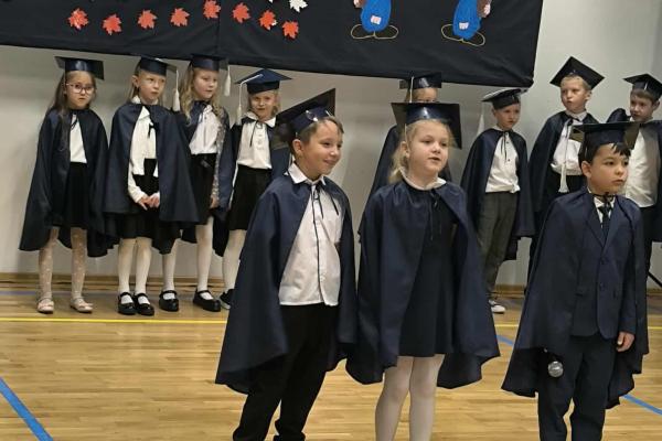 10 października 2025r. odbyło się uroczyste pasowanie uczniów klasy pierwszej. Ślubowanie to bardzo ważne wydarzenie nie tylko dla najmłodszych, ale również dla ich rodziców. W podniosłej atmosferze pierwszacy ślubowali być dobrymi uczniami i Polakami, godnie reprezentować swoją szkołę, swym zachowaniem i nauką sprawiać radość rodzicom i nauczycielom. Po złożeniu ślubowania Pani Dyrektor Małgorzata Ziemianek dokonała symbolicznego pasowania na ucznia dotykając ołówkiem ramion pierwszoklasistów. Zanim jednak maluchy zostały przyjęte do grona społeczności szkolnej musiały przedstawić to, czego już się w szkole nauczyły. Odświętnie ubrani i bardzo przejęci przystąpili do zaprezentowania swoich umiejętności. Pięknie zaśpiewali piosenki, z przejęciem recytowali wiersze oraz udzielali odpowiedzi na szereg ważnych pytań. Po zakończeniu uroczystości Ślubowania uczniowie otrzymali legitymacje, książeczki SKO oraz pamiątkowe dyplomy. Kochane Pierwszaki cieszymy się, że jesteście już uczniami i życzymy Wam sukcesów w nauce.