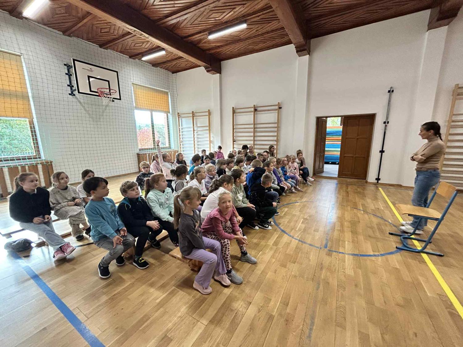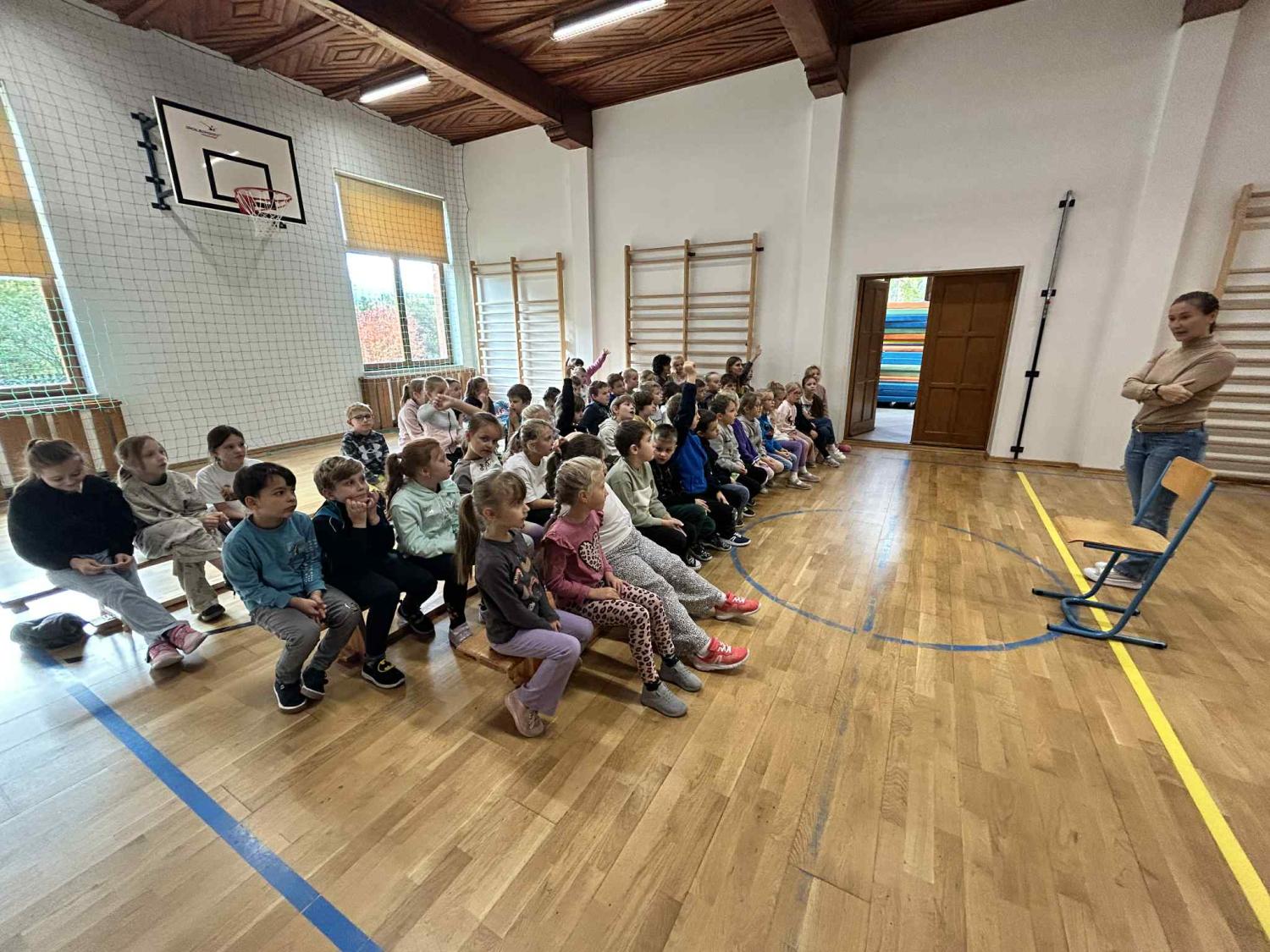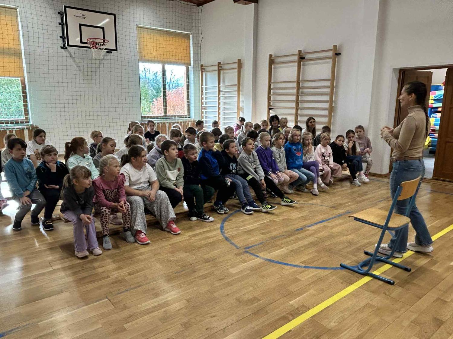 W dniu 16.10.2025r. uczniowie klas I–III uczestniczyli w ciekawej prelekcji na temat higieny osobistej, którą poprowadziła pani z Powiatowej Stacji Sanitarno-Epidemiologicznej w Zakopanem. Podczas spotkania dzieci przypomniały sobie, jak ważne jest dbanie o codzienną higienę, a także dowiedziały się, w jaki sposób zdrowe odżywianie i odpowiednia ilość snu wpływają na samopoczucie i prawidłowy rozwój. Pani prelegentka w przystępny i ciekawy sposób opowiedziała również o zasadach prawidłowego mycia zębów i utrzymywania czystości ciała. Uczniowie chętnie uczestniczyli w rozmowie, odpowiadali na pytania i dzielili się własnymi doświadczeniami.