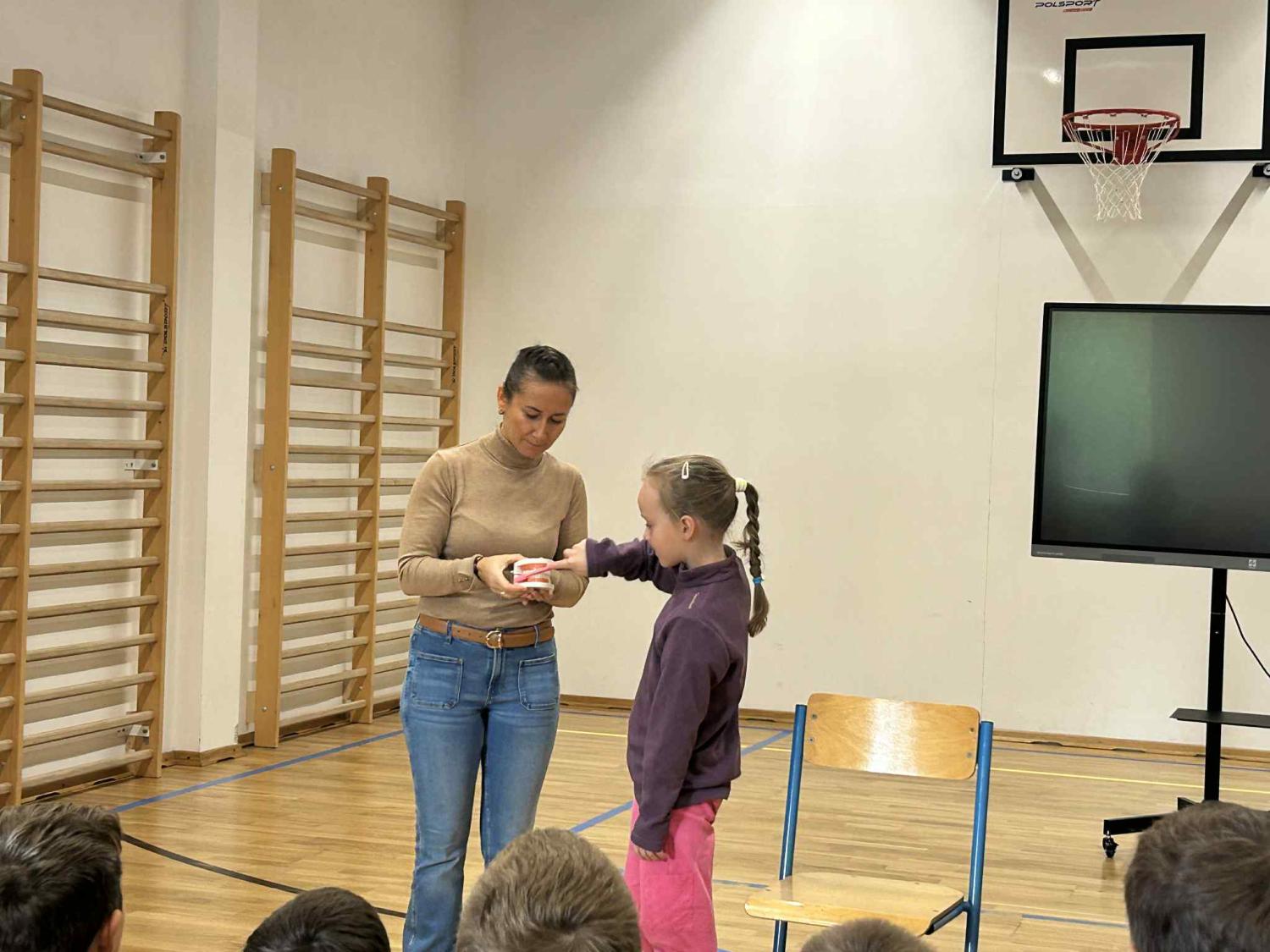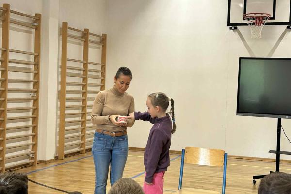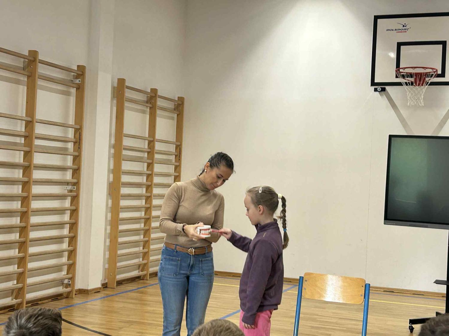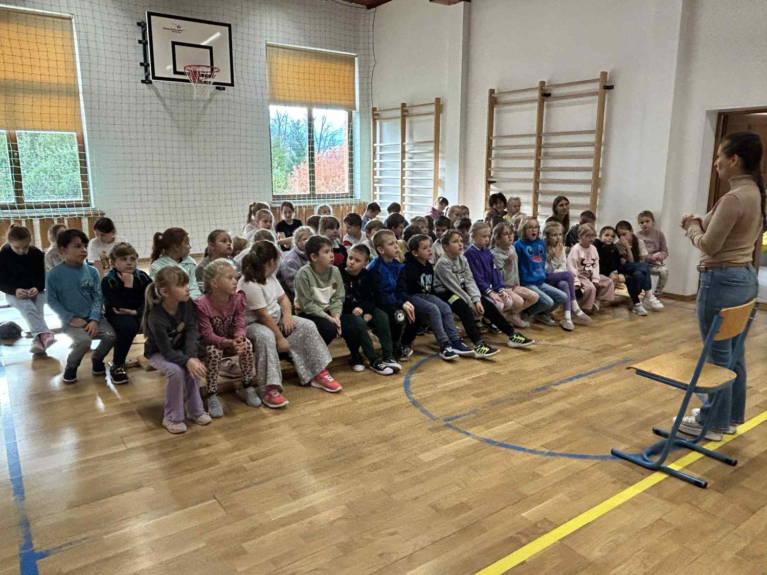 W dniu 16.10.2025r. uczniowie klas I–III uczestniczyli w ciekawej prelekcji na temat higieny osobistej, którą poprowadziła pani z Powiatowej Stacji Sanitarno-Epidemiologicznej w Zakopanem. Podczas spotkania dzieci przypomniały sobie, jak ważne jest dbanie o codzienną higienę, a także dowiedziały się, w jaki sposób zdrowe odżywianie i odpowiednia ilość snu wpływają na samopoczucie i prawidłowy rozwój. Pani prelegentka w przystępny i ciekawy sposób opowiedziała również o zasadach prawidłowego mycia zębów i utrzymywania czystości ciała. Uczniowie chętnie uczestniczyli w rozmowie, odpowiadali na pytania i dzielili się własnymi doświadczeniami.