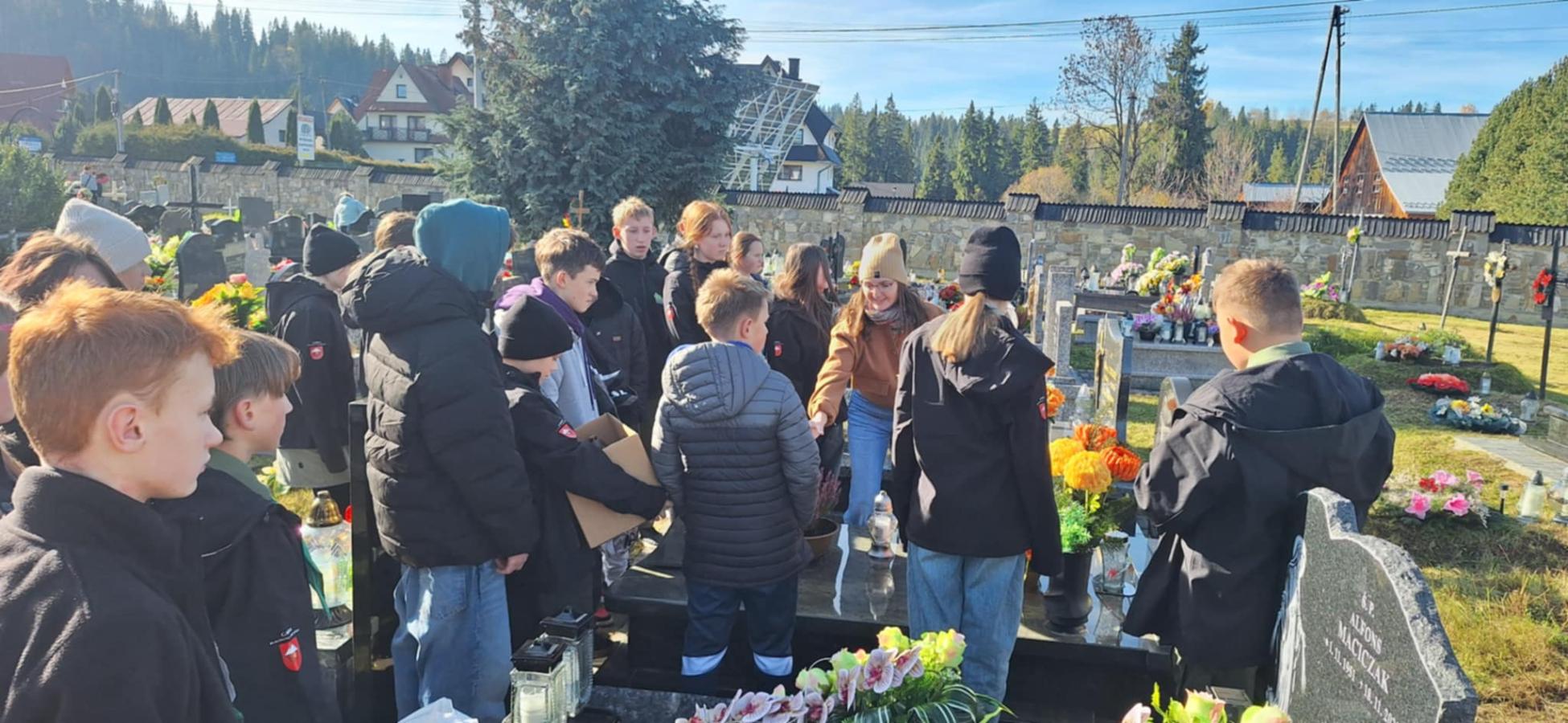 W ramach ogólnopolskiej akcji Ministerstwa Edukacji Narodowej „Szkoła Pamięta”, uczniowie klas VI i VII naszej szkoły, wspólnie z wychowawcami, udali się na cmentarz w Jurgowie. Celem wyjścia było upamiętnienie nauczycieli, pracowników szkoły oraz rodziców zasłużonych dla naszej społeczności szkolnej. Podczas wizyty uczniowie zapalili znicze i oddali hołd tym, którzy swoją pracą i zaangażowaniem przyczynili się do rozwoju szkoły i lokalnej wspólnoty. To ważna lekcja pamięci, szacunku i wdzięczności wobec tych, którzy tworzyli historię naszej szkoły.