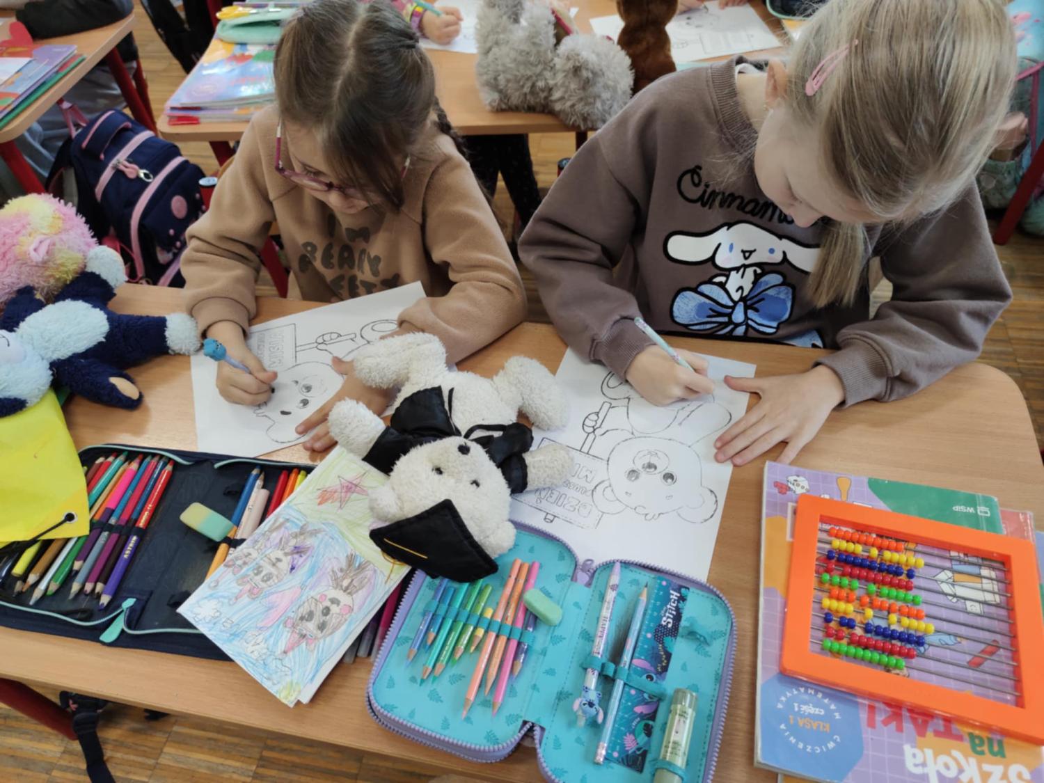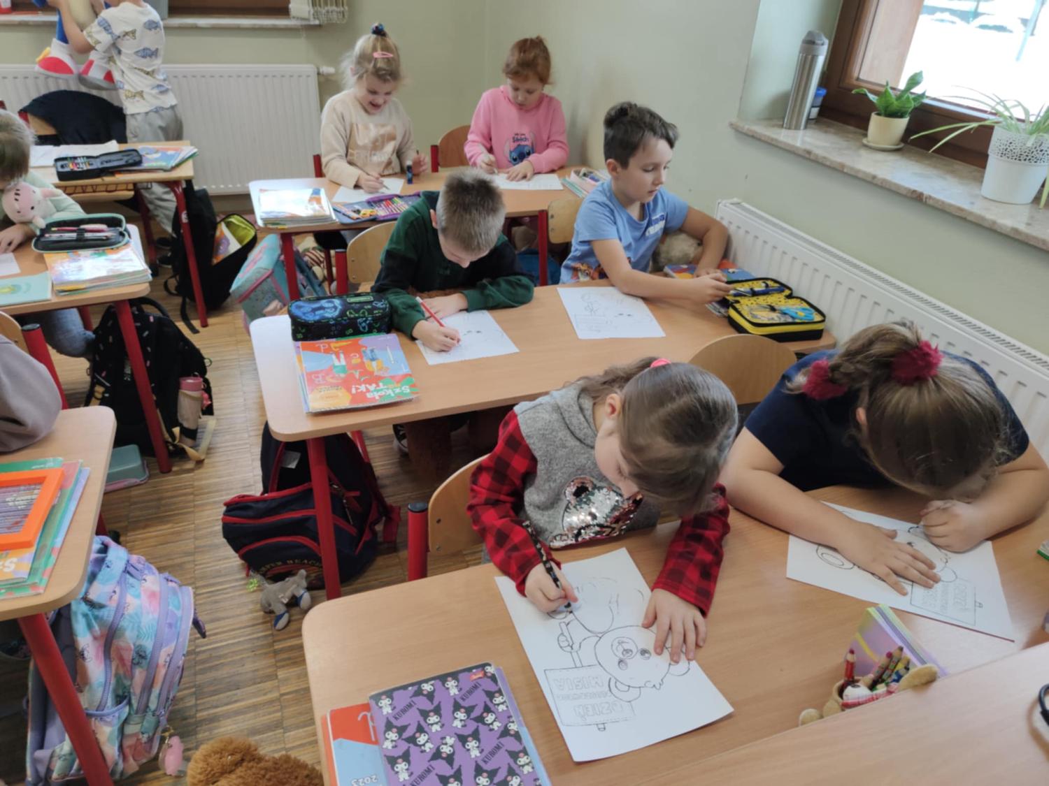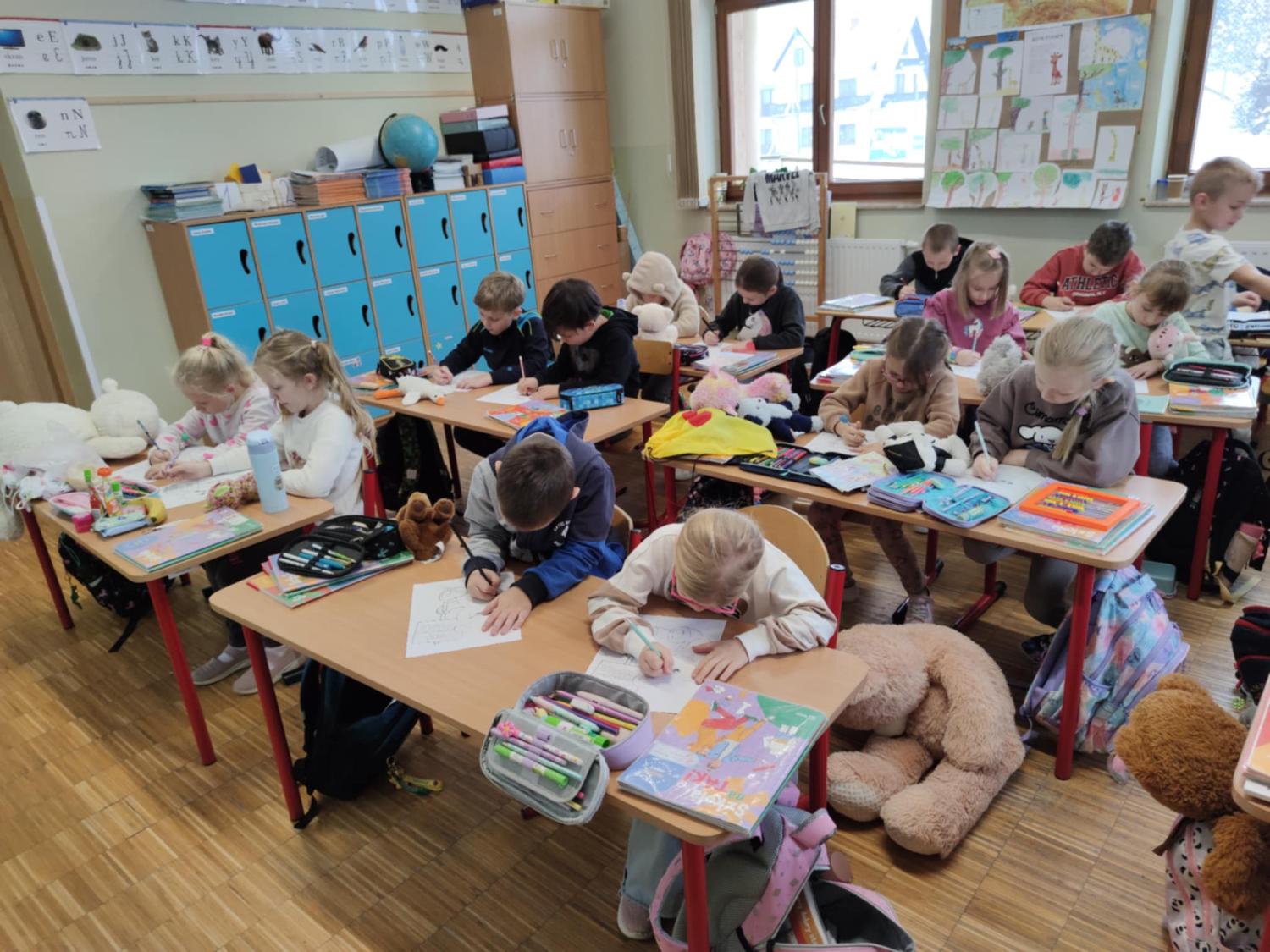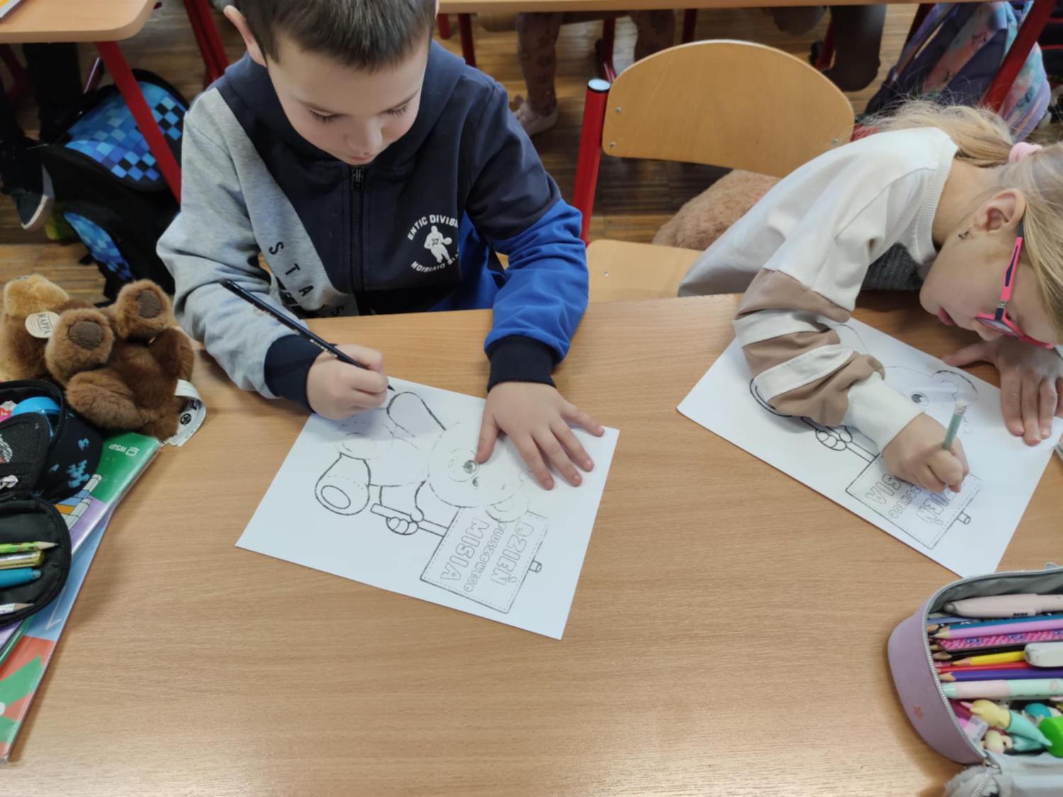 - Uczniowie klasy pierwszej kolorowali piękne ilustracje misiów, wykazując się ogromną starannością i wyobraźnią.