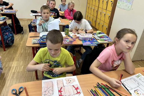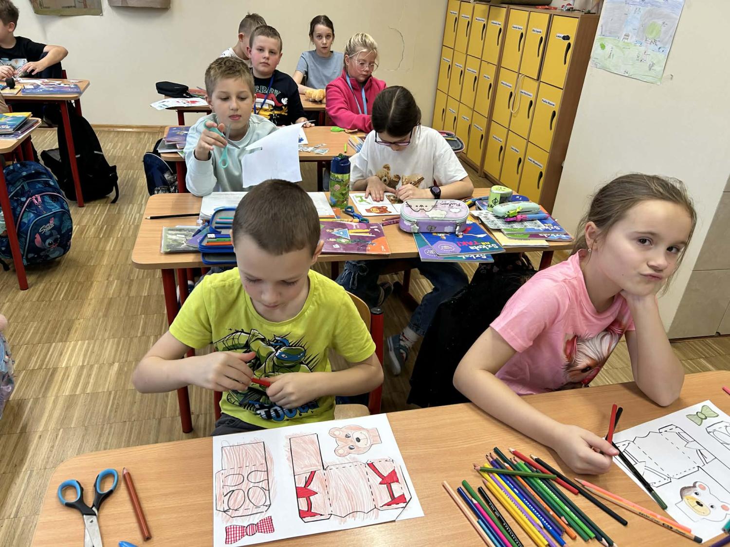 - Uczniowie klasy trzeciej przygotowali praktyczne przyborniki na kredki i ołówki w misiowym stylu, łącząc kreatywność z funkcjonalnością.