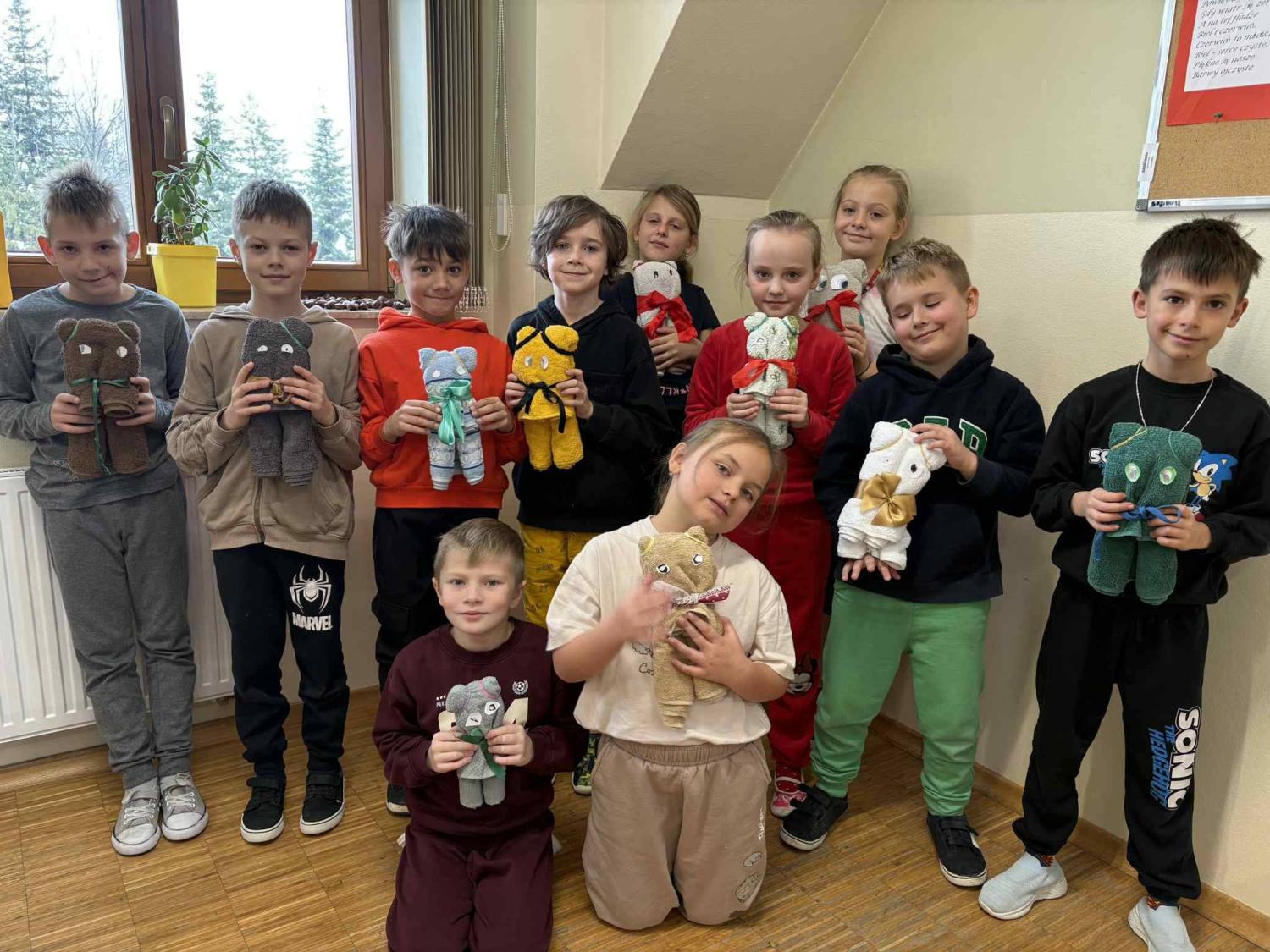 - Klasa druga wykonywała własne, mięciutkie misie z ręczników – prace były pomysłowe i efektowne, a uczniowie świetnie poradzili sobie z zadaniem.