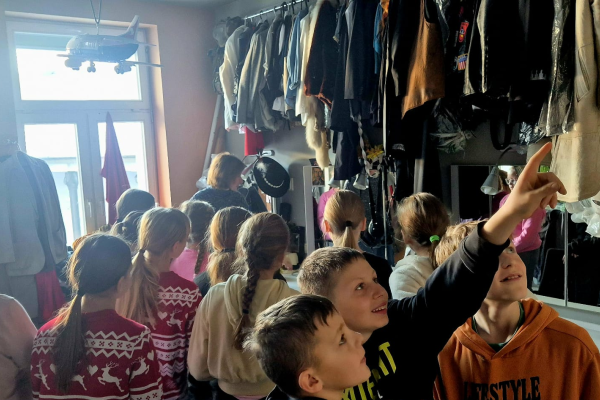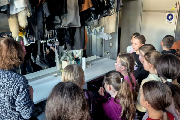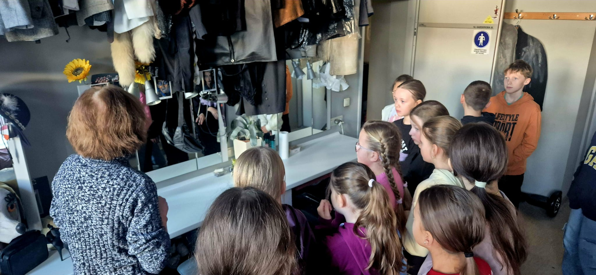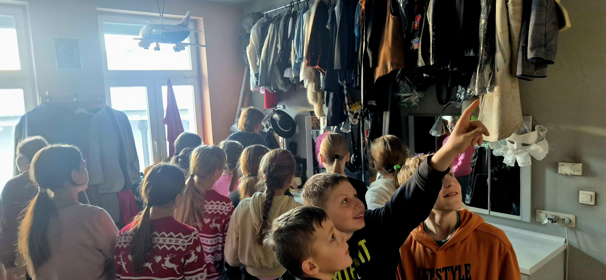 Po zakończonych zajęciach uczniowie zostali oprowadzeni po teatrze. Poznali pomieszczenia przeznaczone dla aktorów i widzów, zobaczyli scenę w surowym stanie, a także odwiedzili garderobę męską. Pracownica teatru opowiedziała im o funkcjonowaniu teatru od kulis, co było dla wielu dużym zaskoczeniem i ciekawym doświadczeniem.