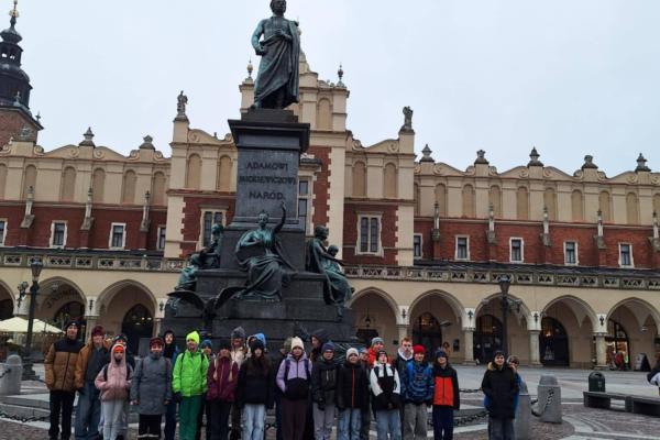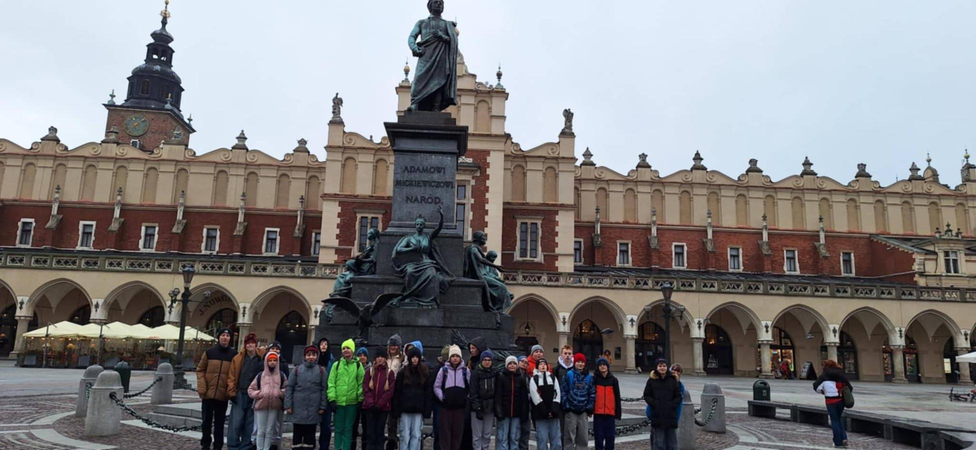 W dniach 27–28 listopada uczniowie klas 5–8 uczestniczyli w wycieczce do Krakowa zorganizowanej w ramach programu "Lekcja o finansach". Podczas pobytu odwiedziliśmy oddział Narodowego Banku Polskiego, gdzie poznaliśmy zasady funkcjonowania Banku Centralnego, proces tworzenia pieniądza oraz rolę NBP w gospodarce. Kolejnym punktem programu była wizyta w Zakładzie Ubezpieczeń Społecznych, która pozwoliła uczniom lepiej zrozumieć, jak działa system ubezpieczeń społecznych i dlaczego jest on ważny dla każdego obywatela. W ramach zajęć przygotowania mundurowego udaliśmy się również do Laser Parku, gdzie uczniowie mogli sprawdzić swoje umiejętności taktyczne, współpracę w grupie oraz refleks. Była to świetna okazja do integracji, aktywności ruchowej i dobrej zabawy.