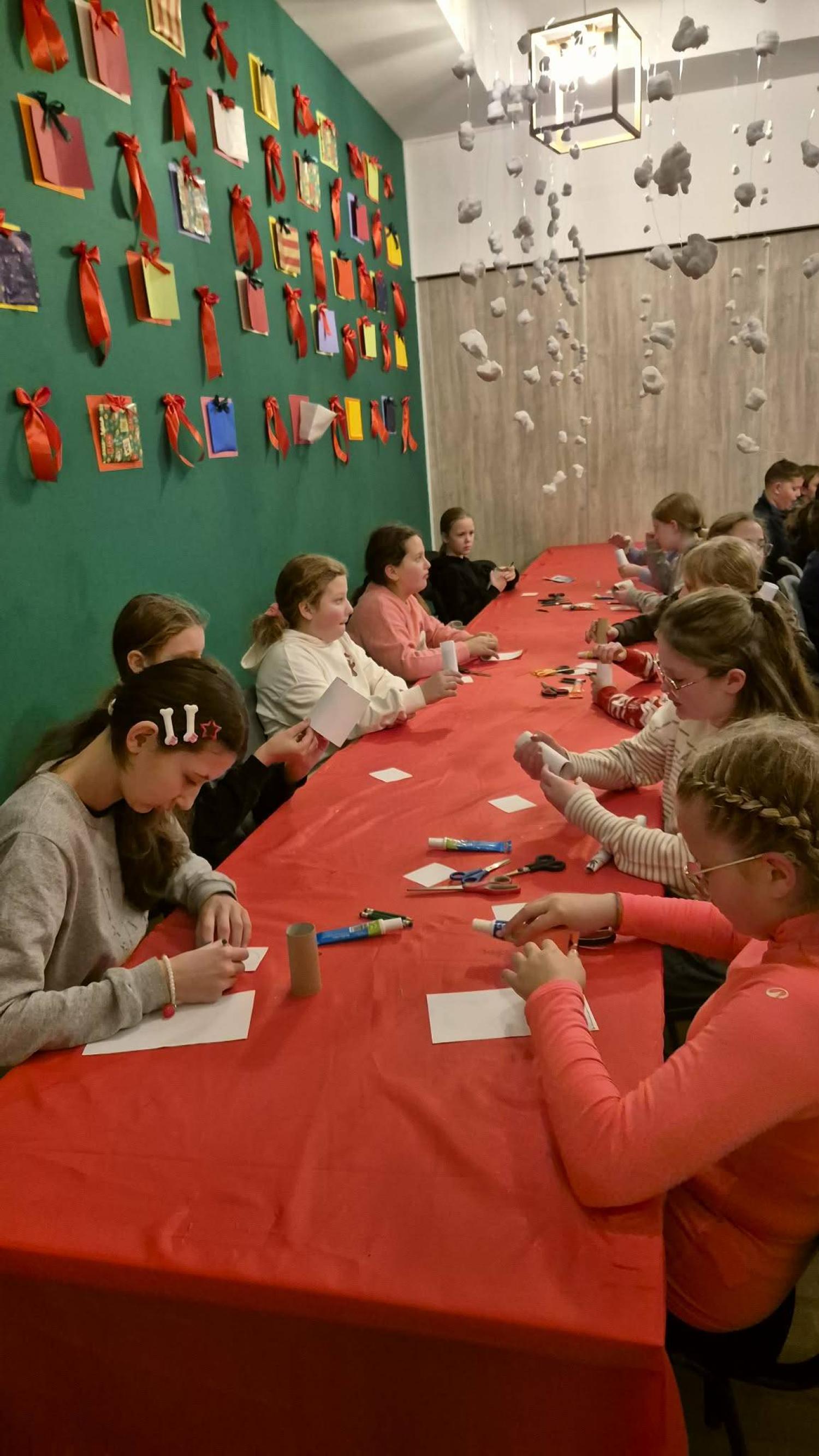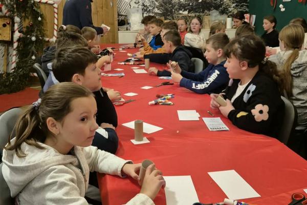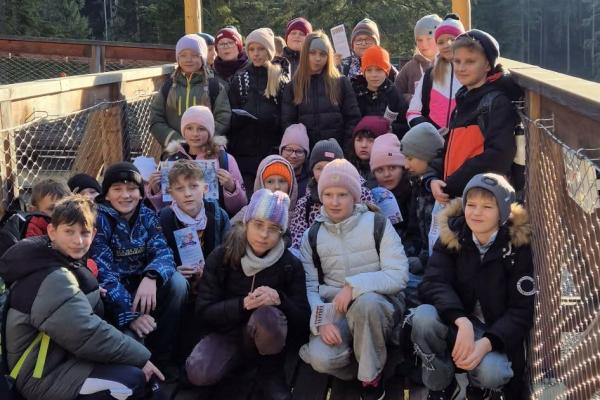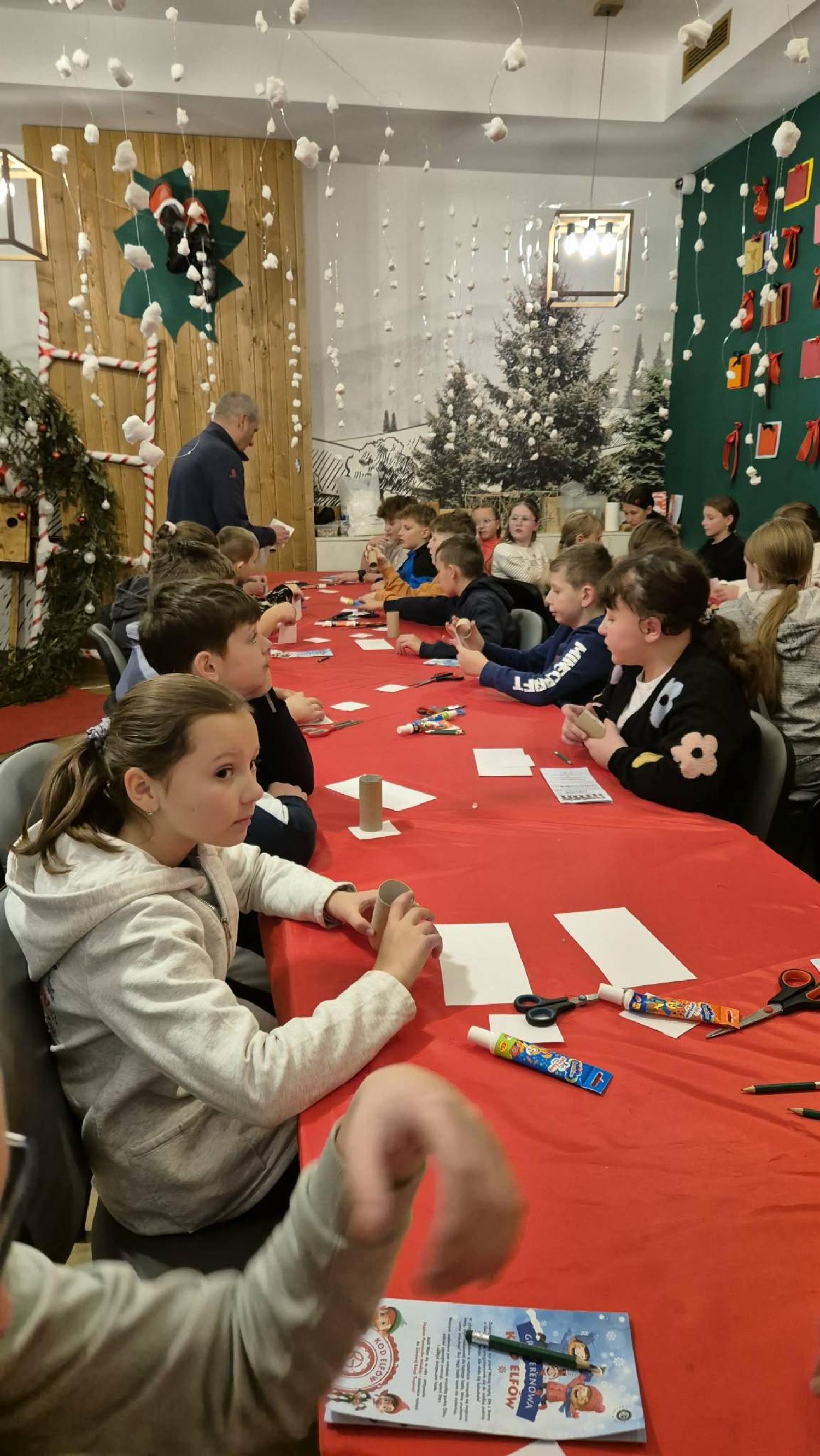 Uczniowie zwiedzili centrum edukacyjno-rekreacyjne, poznając ciekawostki o przyrodzie regionu. Wzięli udział w warsztatach świątecznych, podczas których własnoręcznie wykonali aniołki – pamiątki, które wprowadziły ich w atmosferę Bożego Narodzenia. Dodatkową atrakcją była projekcja bajki świątecznej, która pozwoliła na chwilę odpoczynku w przytulnej, zimowej aurze.