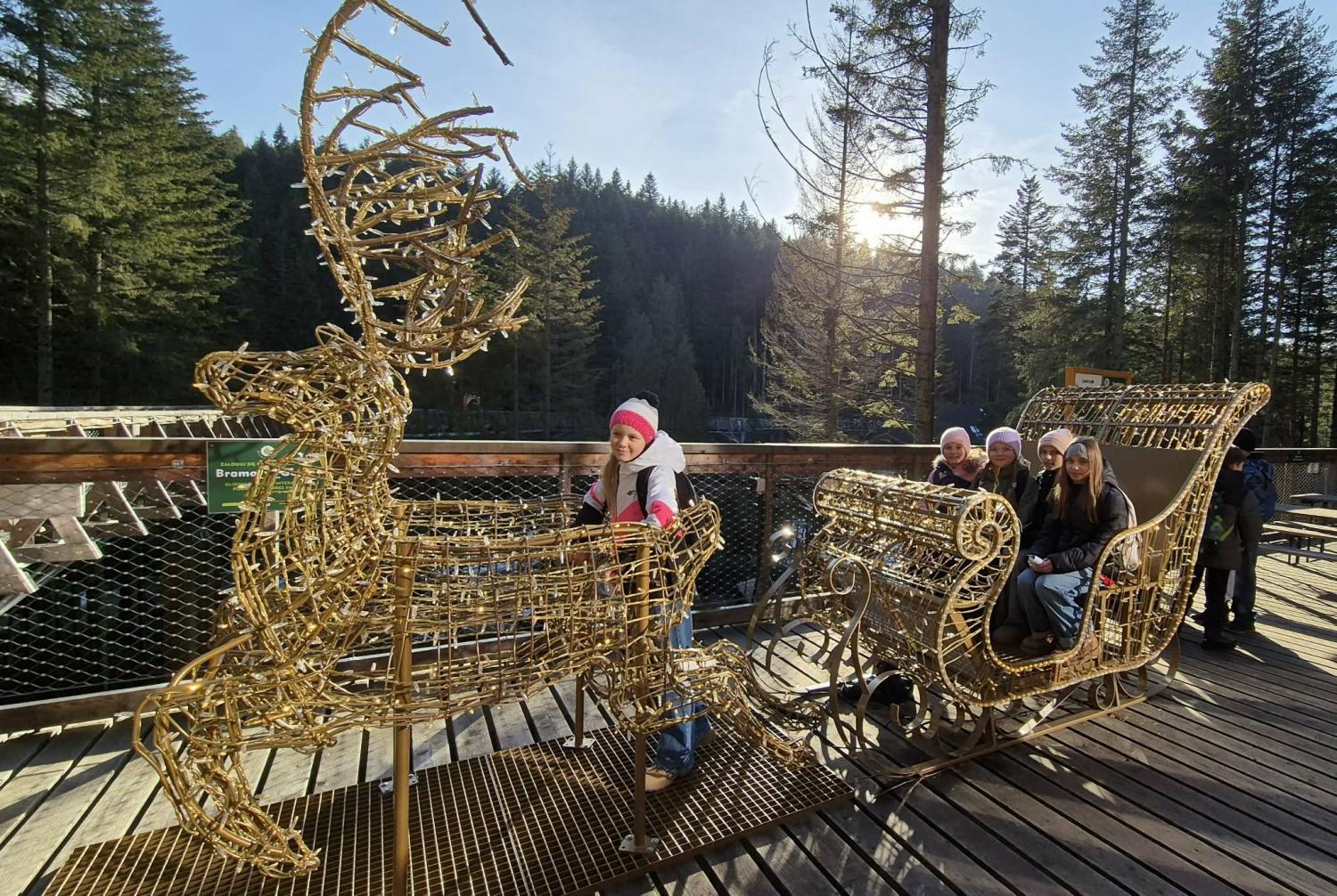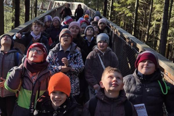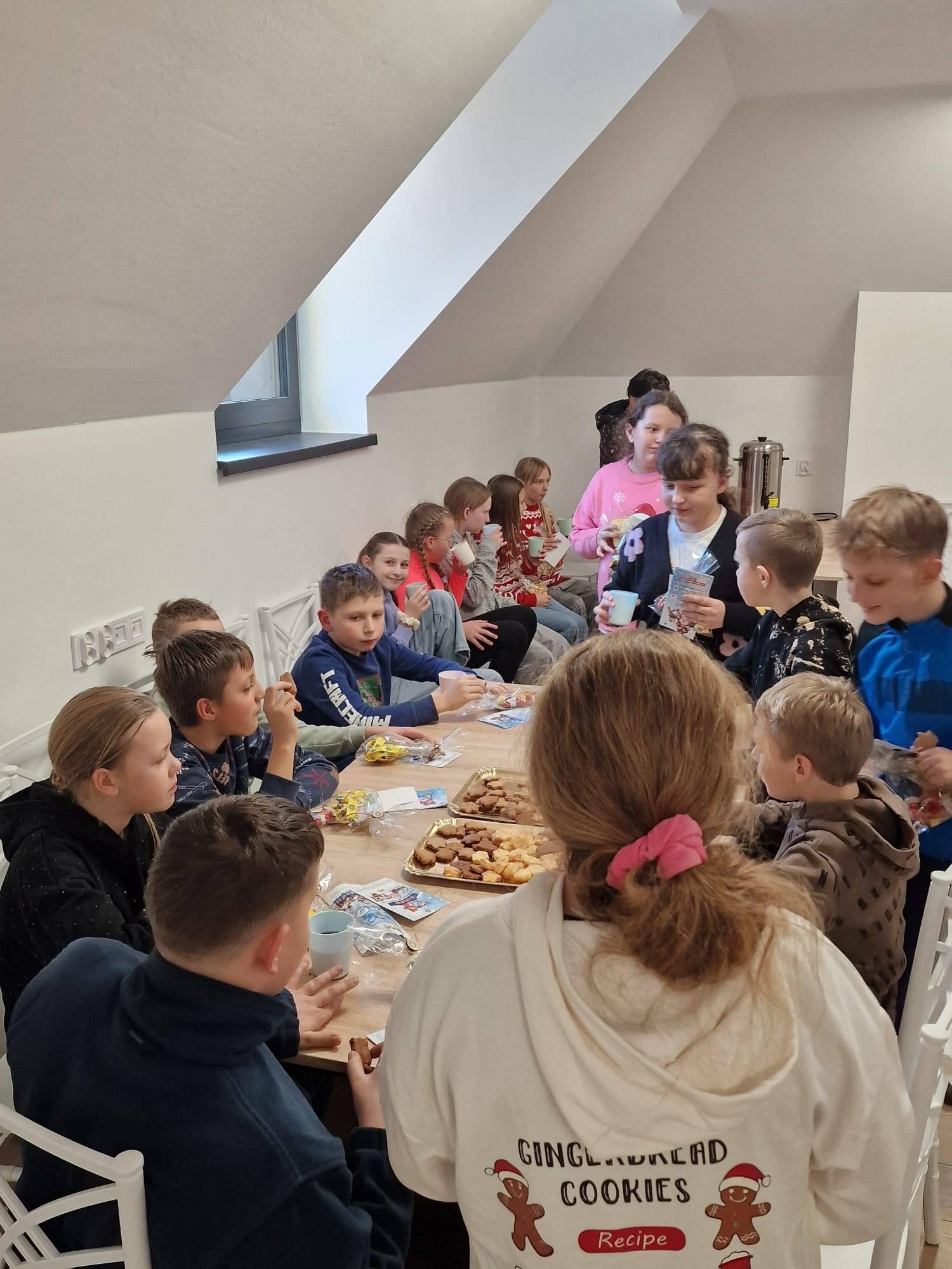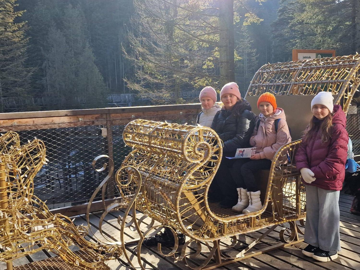 Uczniowie zwiedzili centrum edukacyjno-rekreacyjne, poznając ciekawostki o przyrodzie regionu. Wzięli udział w warsztatach świątecznych, podczas których własnoręcznie wykonali aniołki – pamiątki, które wprowadziły ich w atmosferę Bożego Narodzenia. Dodatkową atrakcją była projekcja bajki świątecznej, która pozwoliła na chwilę odpoczynku w przytulnej, zimowej aurze.