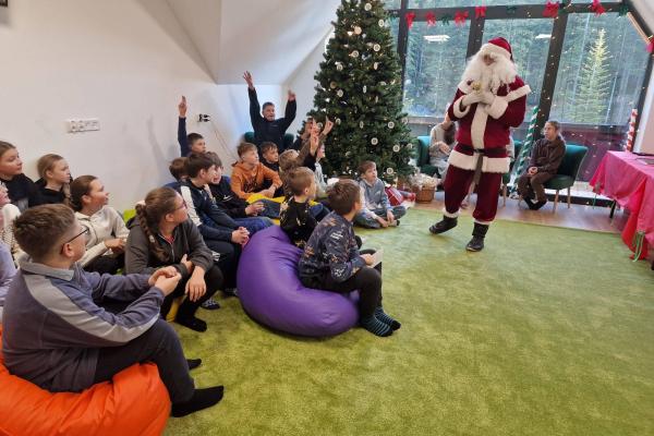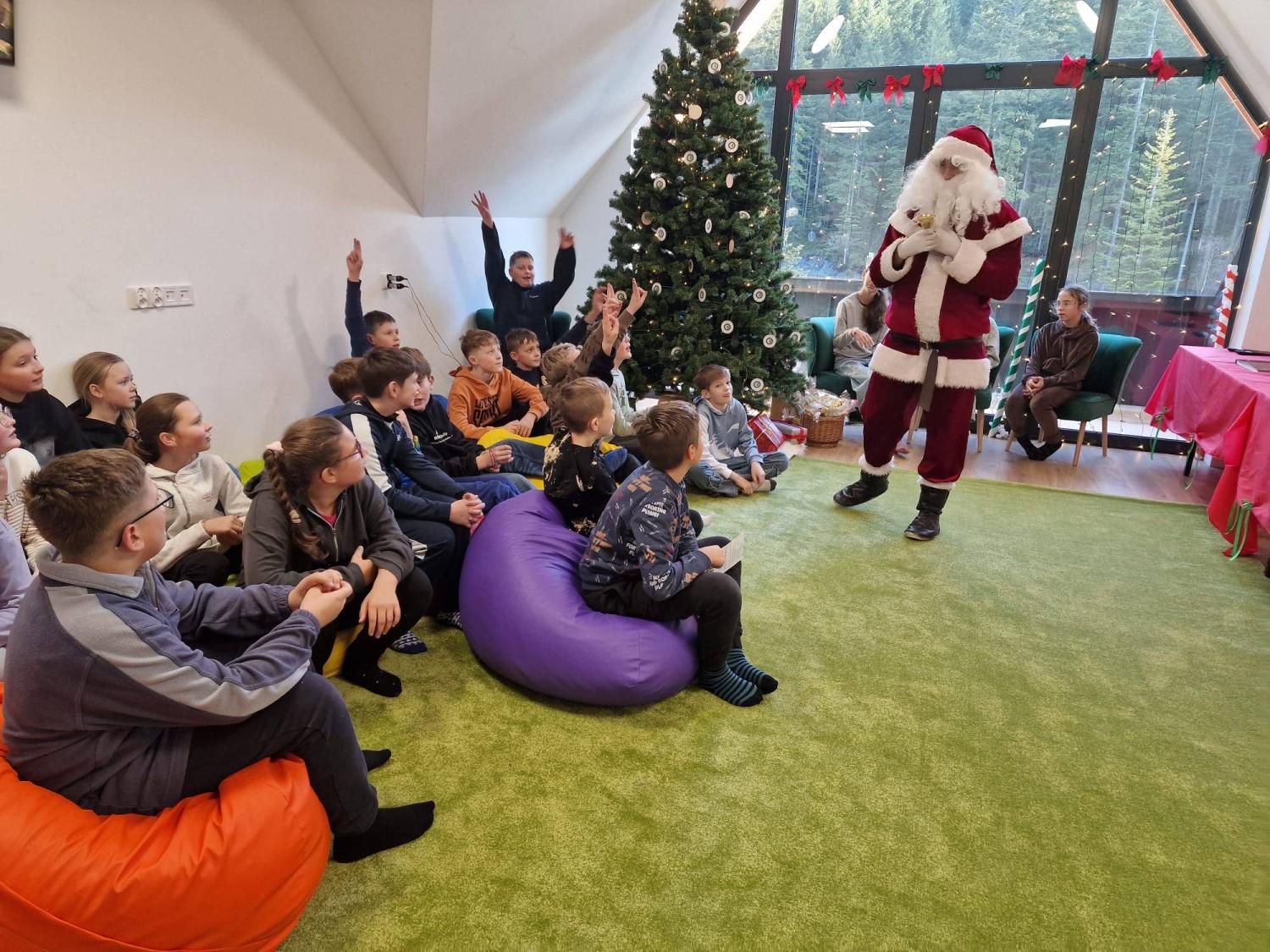 Kulminacyjnym momentem dnia było spotkanie z Mikołajem. Uczniowie otrzymali upominki oraz mieli okazję wykonać pamiątkowe zdjęcia na specjalnie przygotowanych ściankach zimowo-świątecznych.
