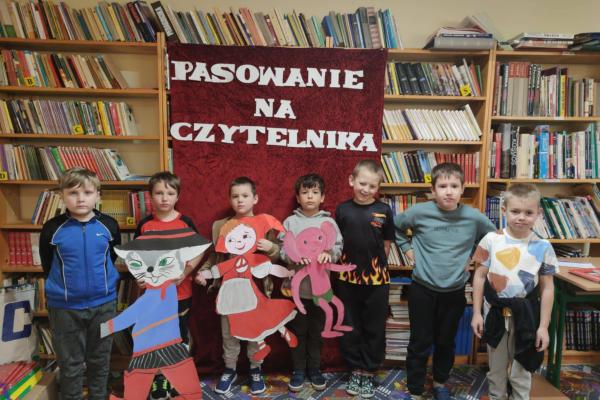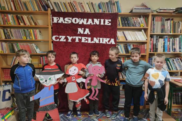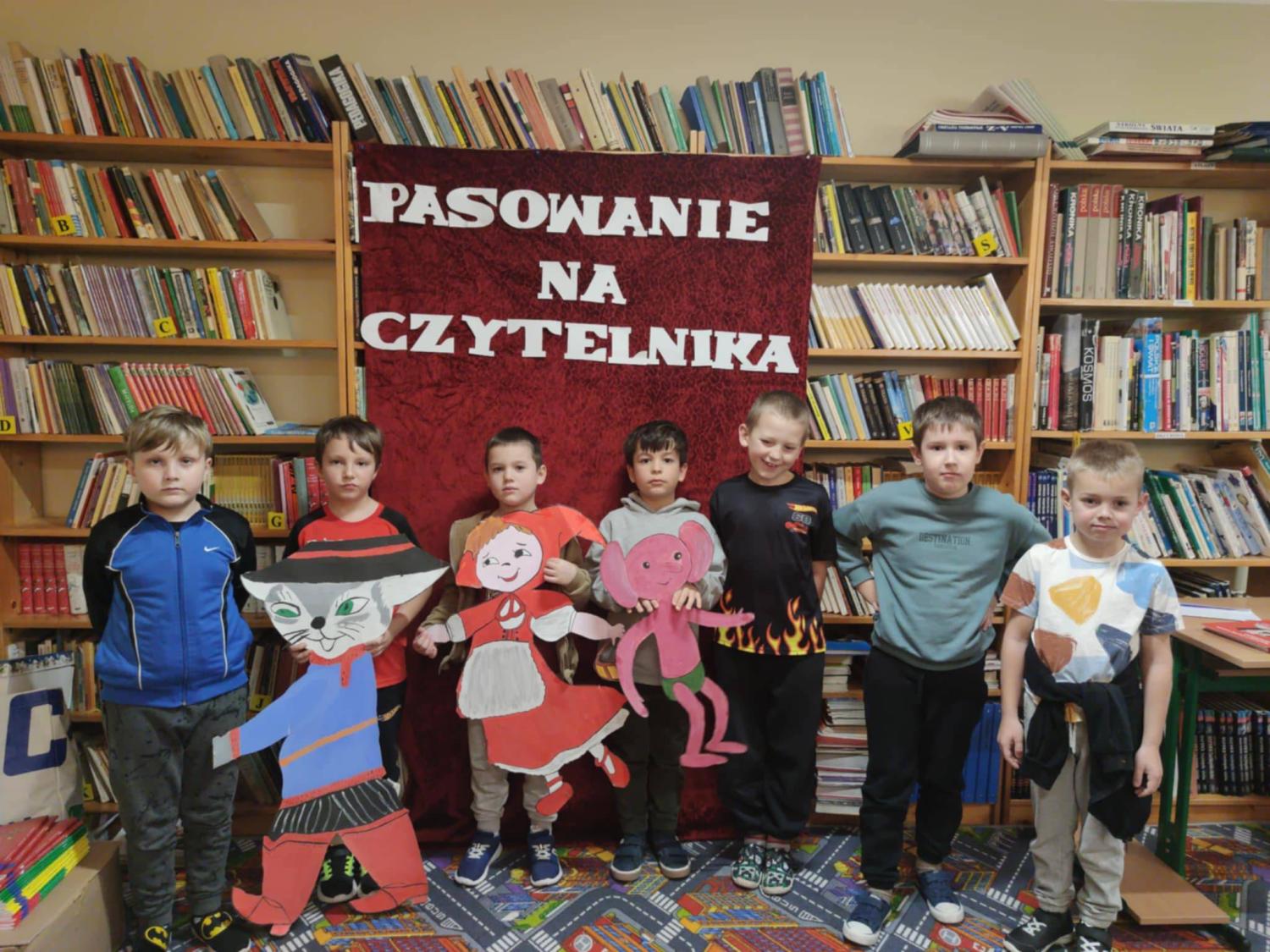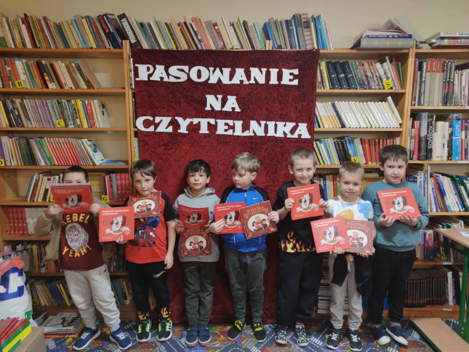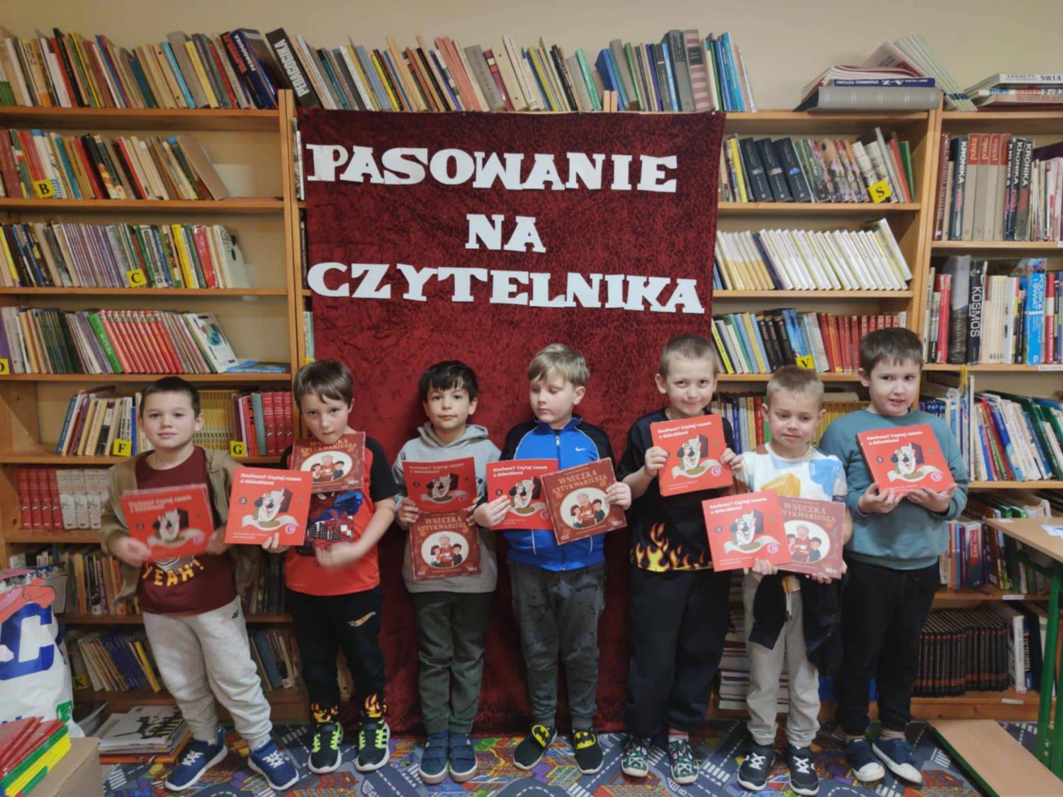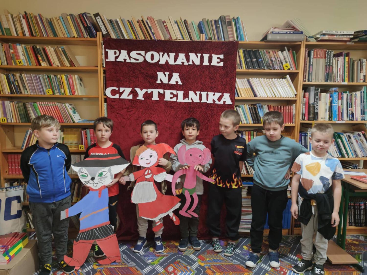 W bibliotece szkolnej odbyło się pasowanie uczniów klasy pierwszej na czytelnika. Pierwszoklasiści wzięli udział w ciekawych zagadkach związanych z ilustracjami znanych książek oraz wykonywali zadania przygotowane do pracy w grupach. Uroczystość uatrakcyjniły wiersze o książkach i czytaniu, które recytowali starsi koledzy. Na zakończenie uczniowie złożyli przyrzeczenie poszanowania książek i zostali oficjalnie pasowani na czytelników. Każdy pierwszoklasista otrzymał pamiątkową książkę pt. „Wnuczka antykwariusza”. Spotkanie przebiegło w miłej i radosnej atmosferze, zachęcając dzieci do częstego korzystania z biblioteki szkolnej.