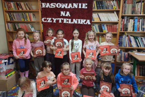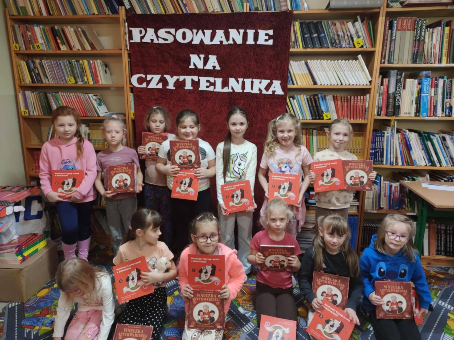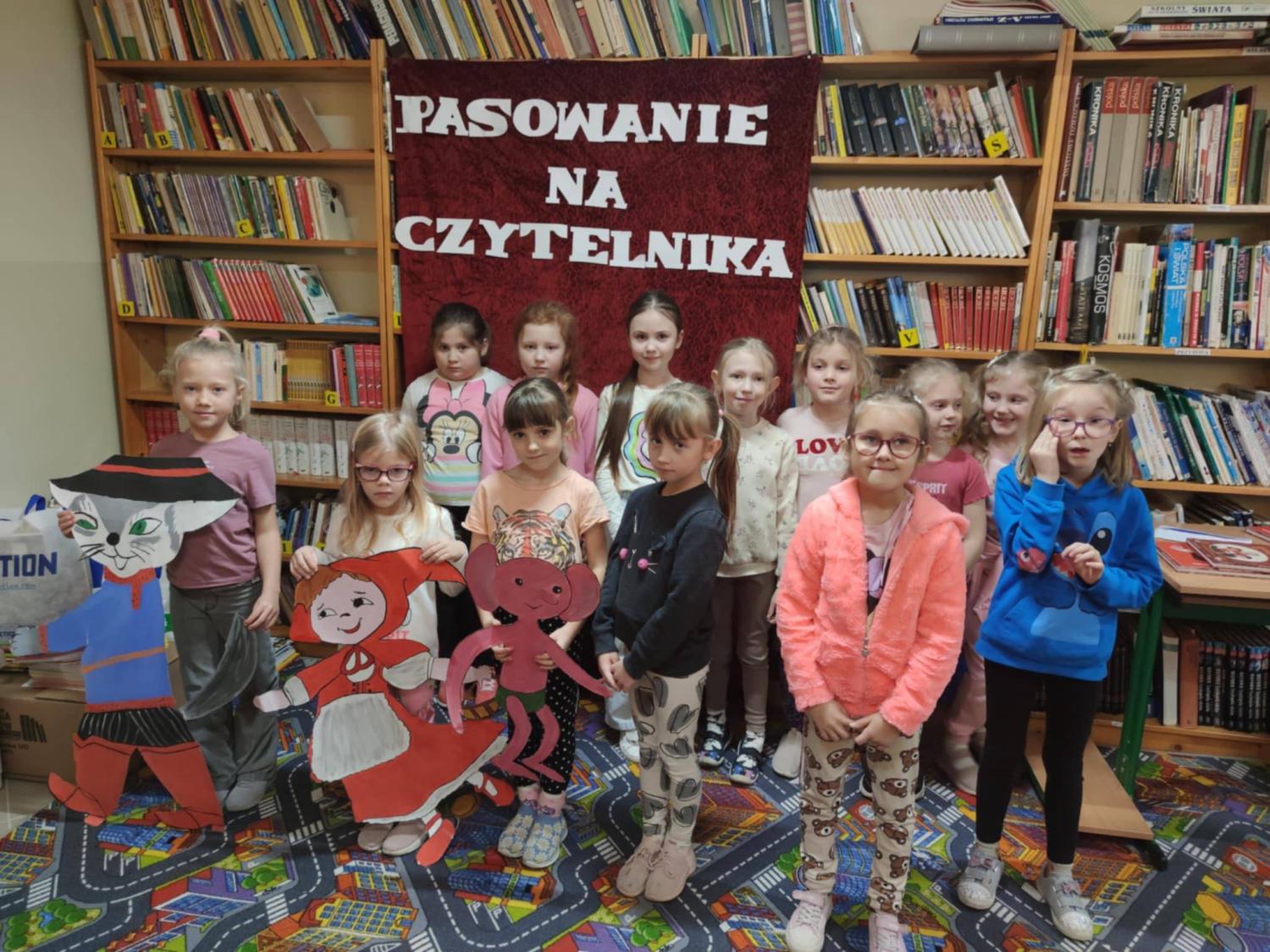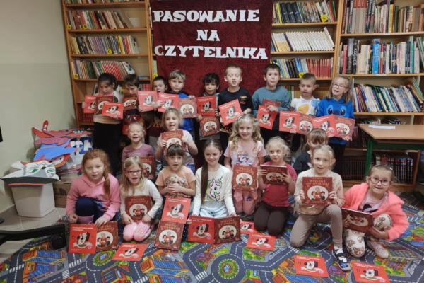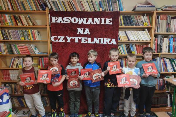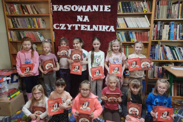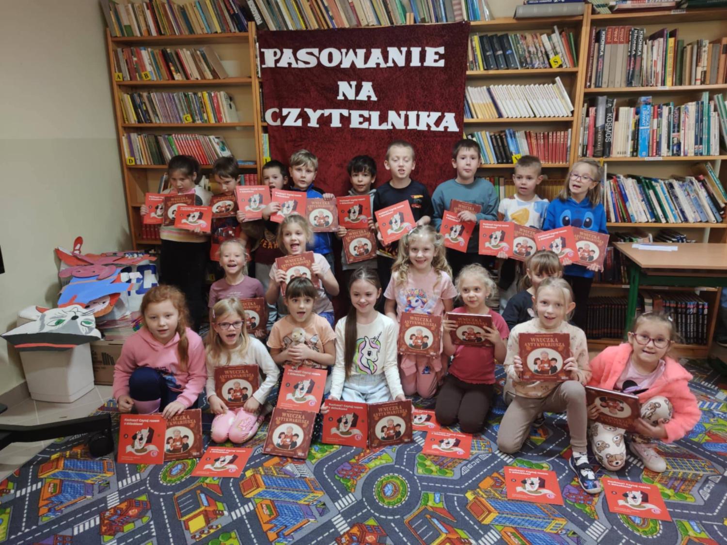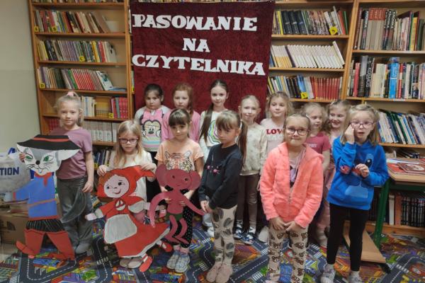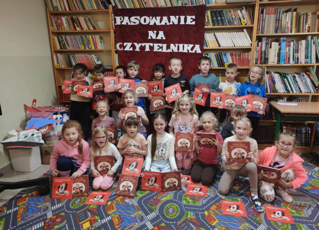 W bibliotece szkolnej odbyło się pasowanie uczniów klasy pierwszej na czytelnika. Pierwszoklasiści wzięli udział w ciekawych zagadkach związanych z ilustracjami znanych książek oraz wykonywali zadania przygotowane do pracy w grupach. Uroczystość uatrakcyjniły wiersze o książkach i czytaniu, które recytowali starsi koledzy. Na zakończenie uczniowie złożyli przyrzeczenie poszanowania książek i zostali oficjalnie pasowani na czytelników. Każdy pierwszoklasista otrzymał pamiątkową książkę pt. „Wnuczka antykwariusza”. Spotkanie przebiegło w miłej i radosnej atmosferze, zachęcając dzieci do częstego korzystania z biblioteki szkolnej.