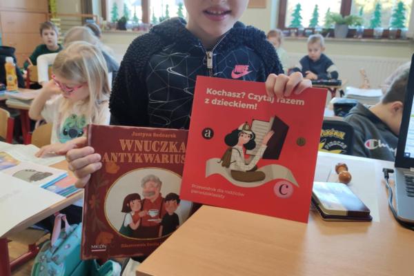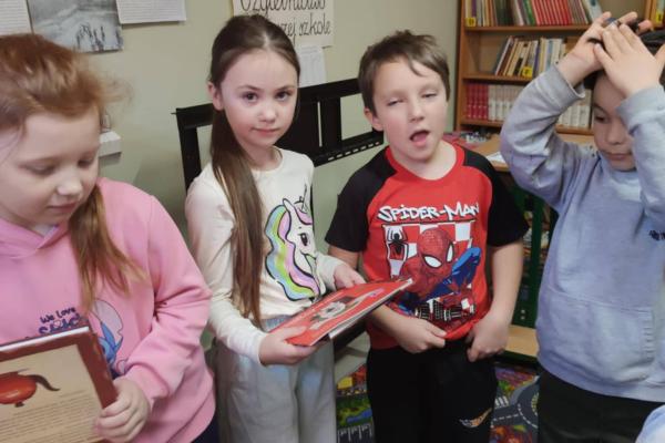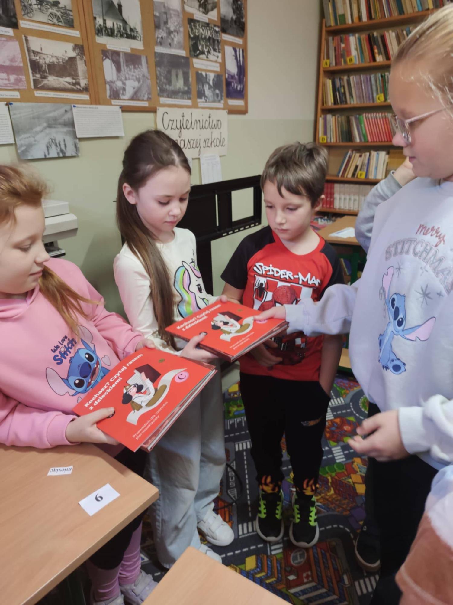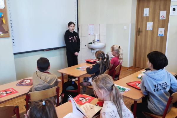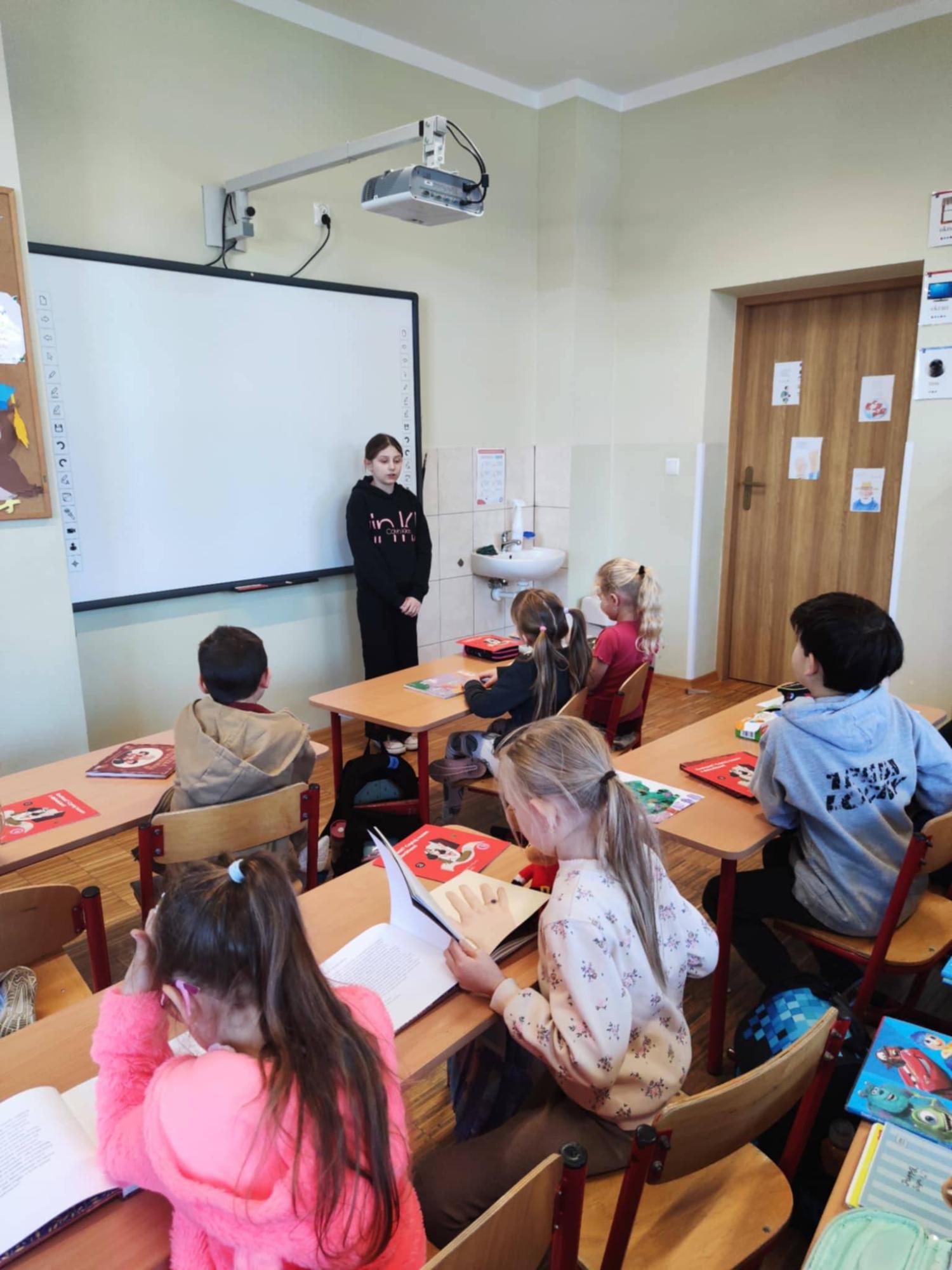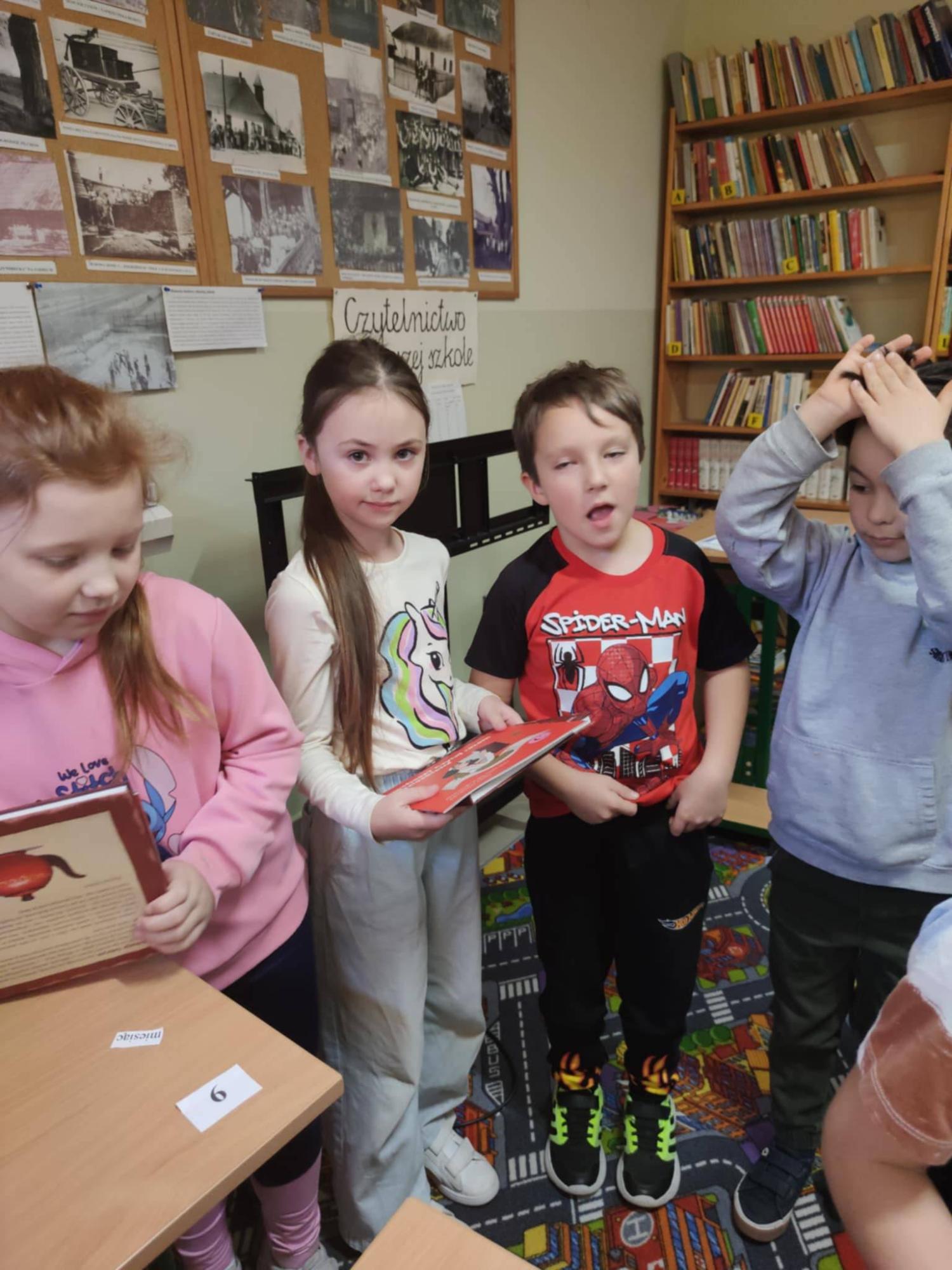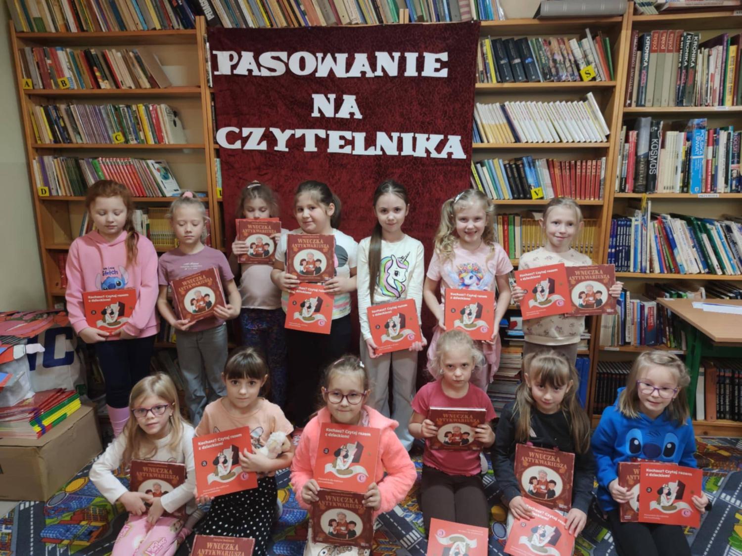 W bibliotece szkolnej odbyło się pasowanie uczniów klasy pierwszej na czytelnika. Pierwszoklasiści wzięli udział w ciekawych zagadkach związanych z ilustracjami znanych książek oraz wykonywali zadania przygotowane do pracy w grupach. Uroczystość uatrakcyjniły wiersze o książkach i czytaniu, które recytowali starsi koledzy. Na zakończenie uczniowie złożyli przyrzeczenie poszanowania książek i zostali oficjalnie pasowani na czytelników. Każdy pierwszoklasista otrzymał pamiątkową książkę pt. „Wnuczka antykwariusza”. Spotkanie przebiegło w miłej i radosnej atmosferze, zachęcając dzieci do częstego korzystania z biblioteki szkolnej.