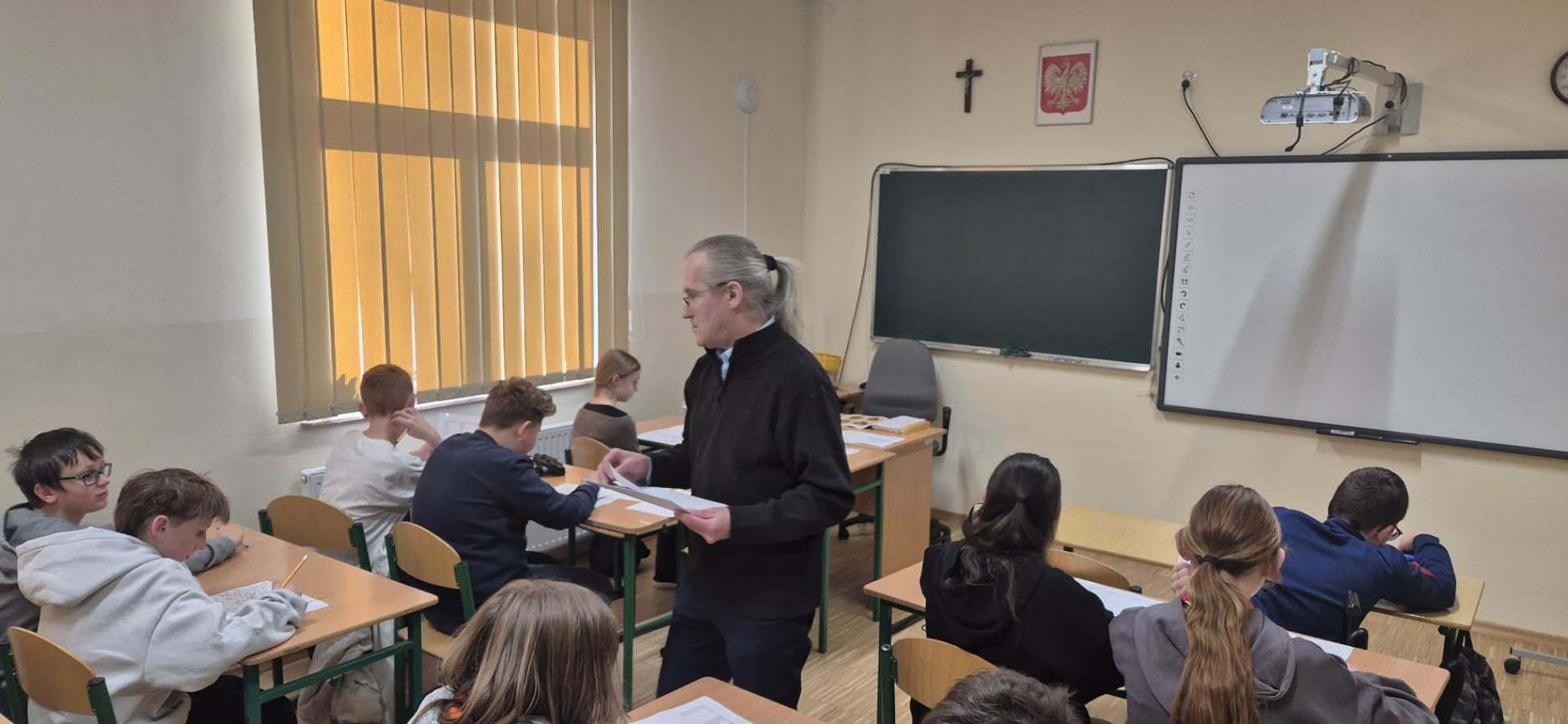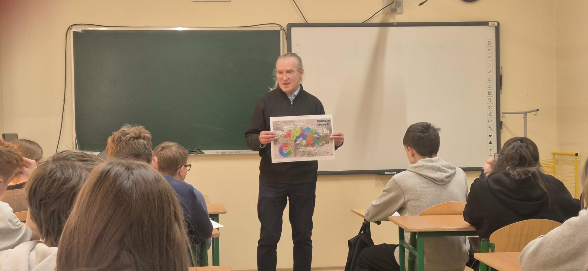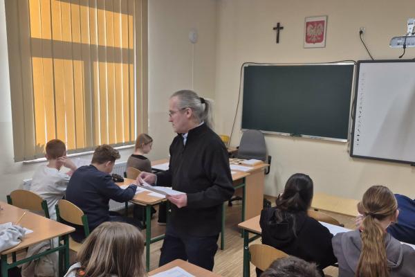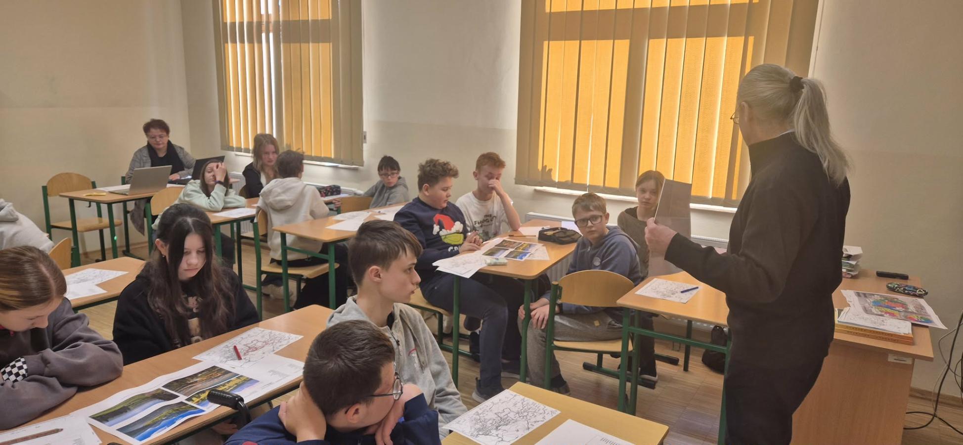 W dniu 17 grudnia odbyła się lekcja biblioteczna prowadzona przez bibliotekarza Szczepana Kowalskiego z Biblioteki Pedagogicznej w Nowym Targu pod hasłem „Z wizytą u sąsiadów”. Tematem zajęć było poznanie sąsiednich regionów kulturowych, ich tradycji, zwyczajów, strojów ludowych. Uczniowie poznali podobieństwa i różnice między kulturą własnego regionu a regionami sąsiednimi. Zajęcia wzbogacone były mapami oraz ilustracjami. Lekcja przebiegła w przyjaznej atmosferze i przyczyniła się do pogłębienia wiedzy o lokalnym i sąsiednim dziedzictwie kulturowym.