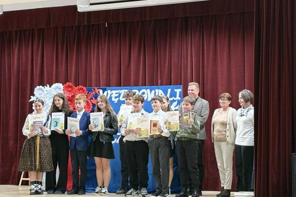 dodano dnia: 12 listopada 2025 / 21:3Czytaj więcejW naszej szkole odbyła się uroczysta akademia z okazji 11 listopada, którą przygotowała klasa 6. Część artystyczną uświetnił chór dziewcząt z klasy 5b. Scenariusz akademii opierał się na motywie harcerzy siedzących przy ognisku, którzy wspominali drogę Polski do odzyskania niepodległości. W trakcie występu zaprezentowano scenki odpowiadające kolejnym aktom: „Co to jest ojczyzna?”, „Droga do niepodległości”, „Jedenasty listopada” oraz „Apel ognia”. Każda z nich przypominała widzom o najważniejszych wydarzeniach, wartościach i emocjach związanych z dążeniem Polaków do wolności. Podczas akademii cała szkoła wspólnie odśpiewała hymn państwowy, biorąc udział w ogólnopolskiej akcji „Szkoła do hymnu”. Uroczystość miała podniosły i patriotyczny charakter, a jej przygotowanie i wykonanie było na wysokim poziomie.