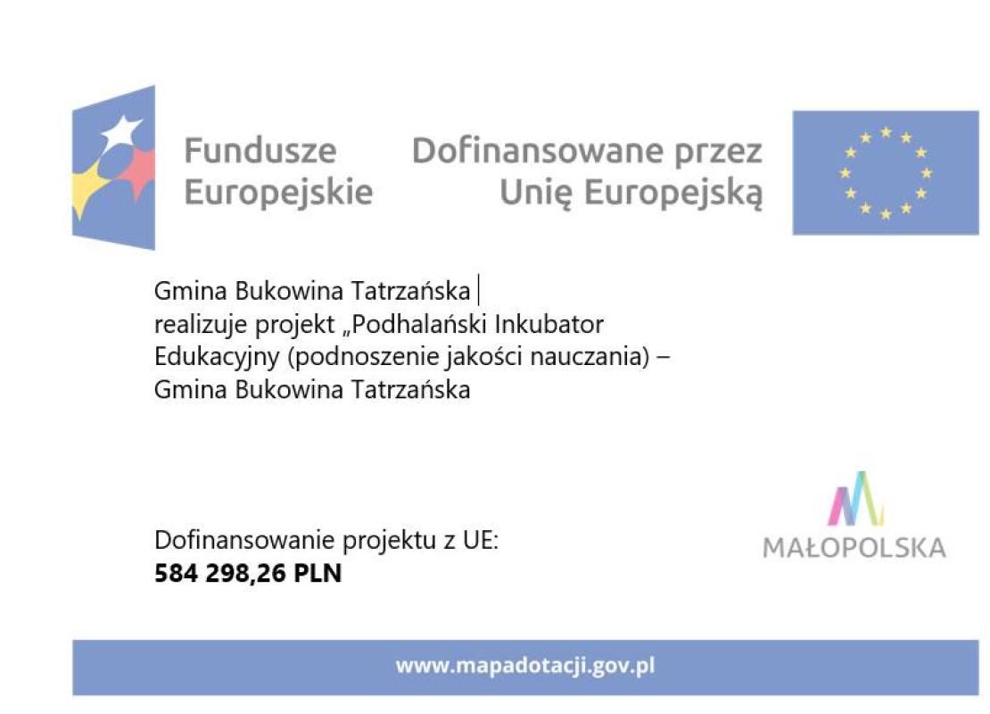 Projekt: „Podhalański Inkubator Edukacyjny (podnoszenie jakości nauczania) – Gmina Bukowina Tatrzańska”